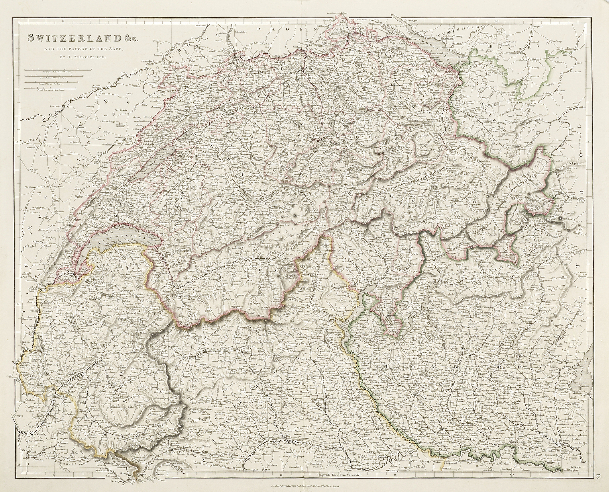 First edition dated 15th Feb. 1833 published 1834, of Arrowsmith’s map of Switzerland.