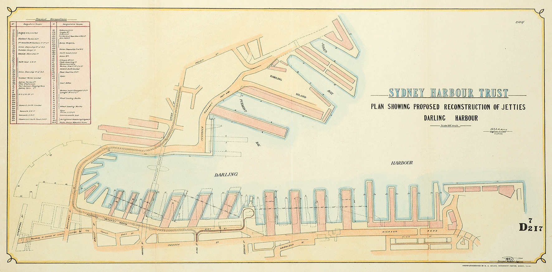 Detailed plan showing the proposed reconstruction of wharfage in Darling Harbour in 1921.