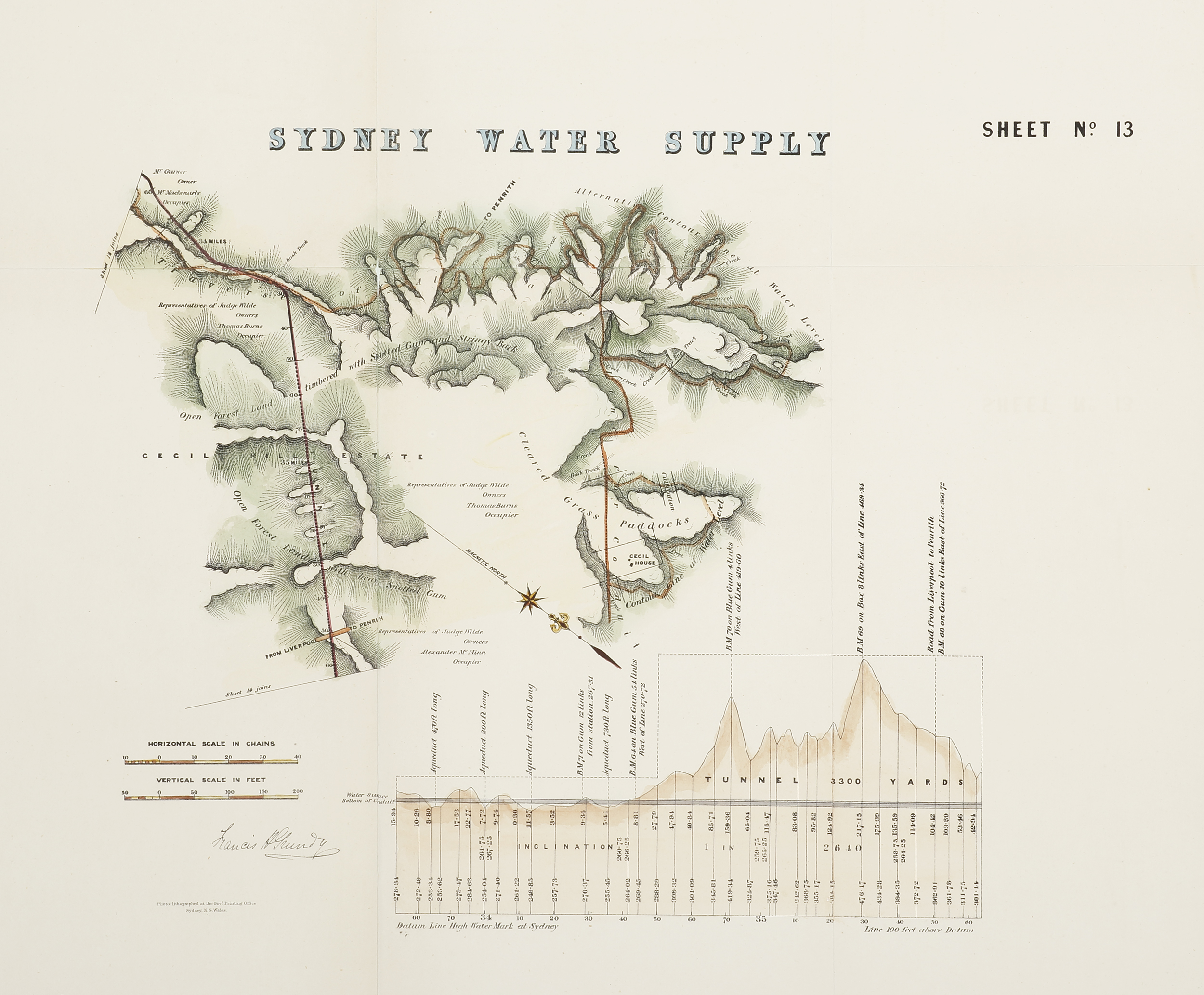 Rare map showing the proposed tunnel running through privates land including the Cecil Hill Estate for Sydney’s water storage.