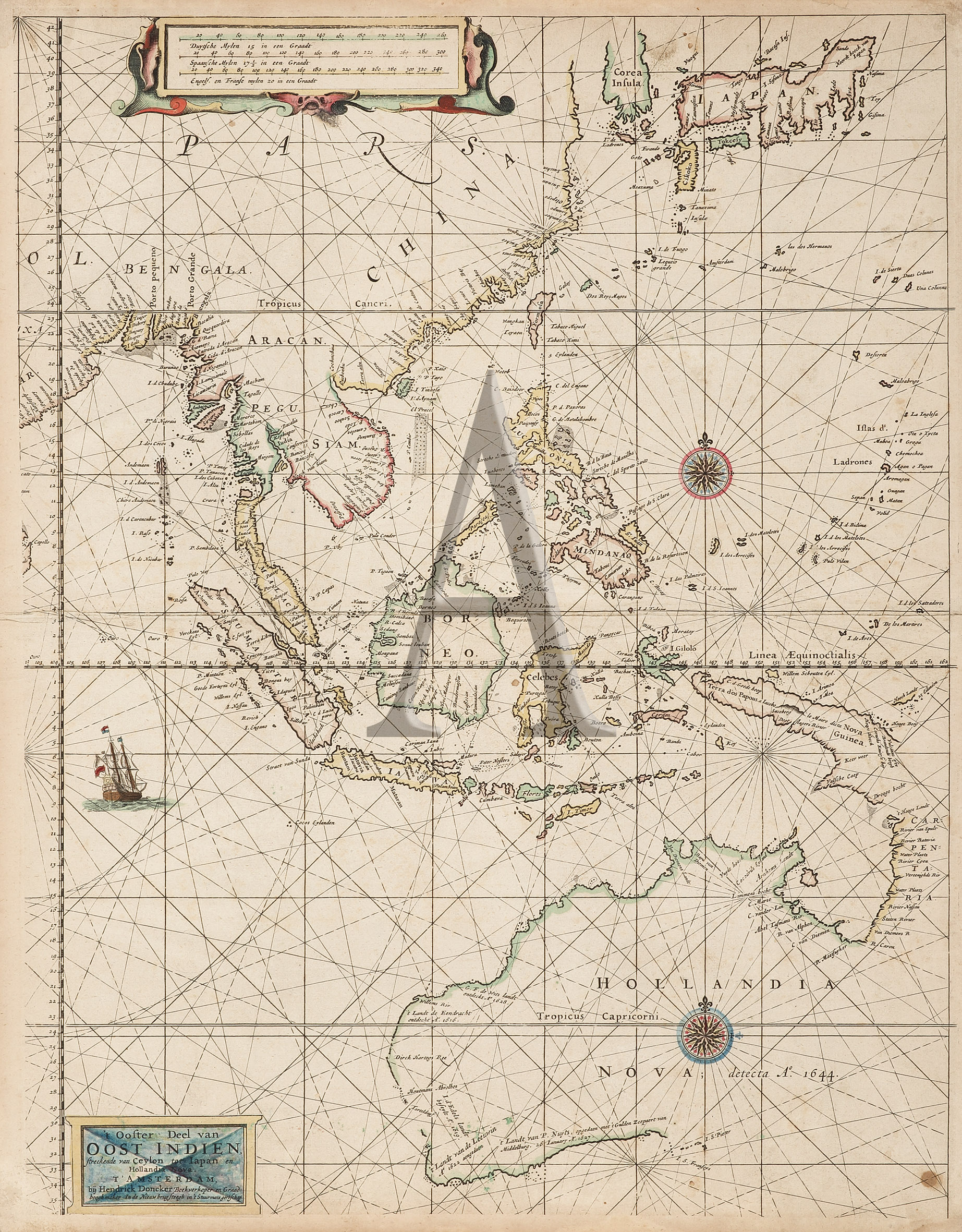 the Oost Indien chart is untitled (Koeman 158 Don 2-14). Further editions of the atlas were published in 1660, 1661 and 1662 in which the Oost Indien chart remained unchanged.