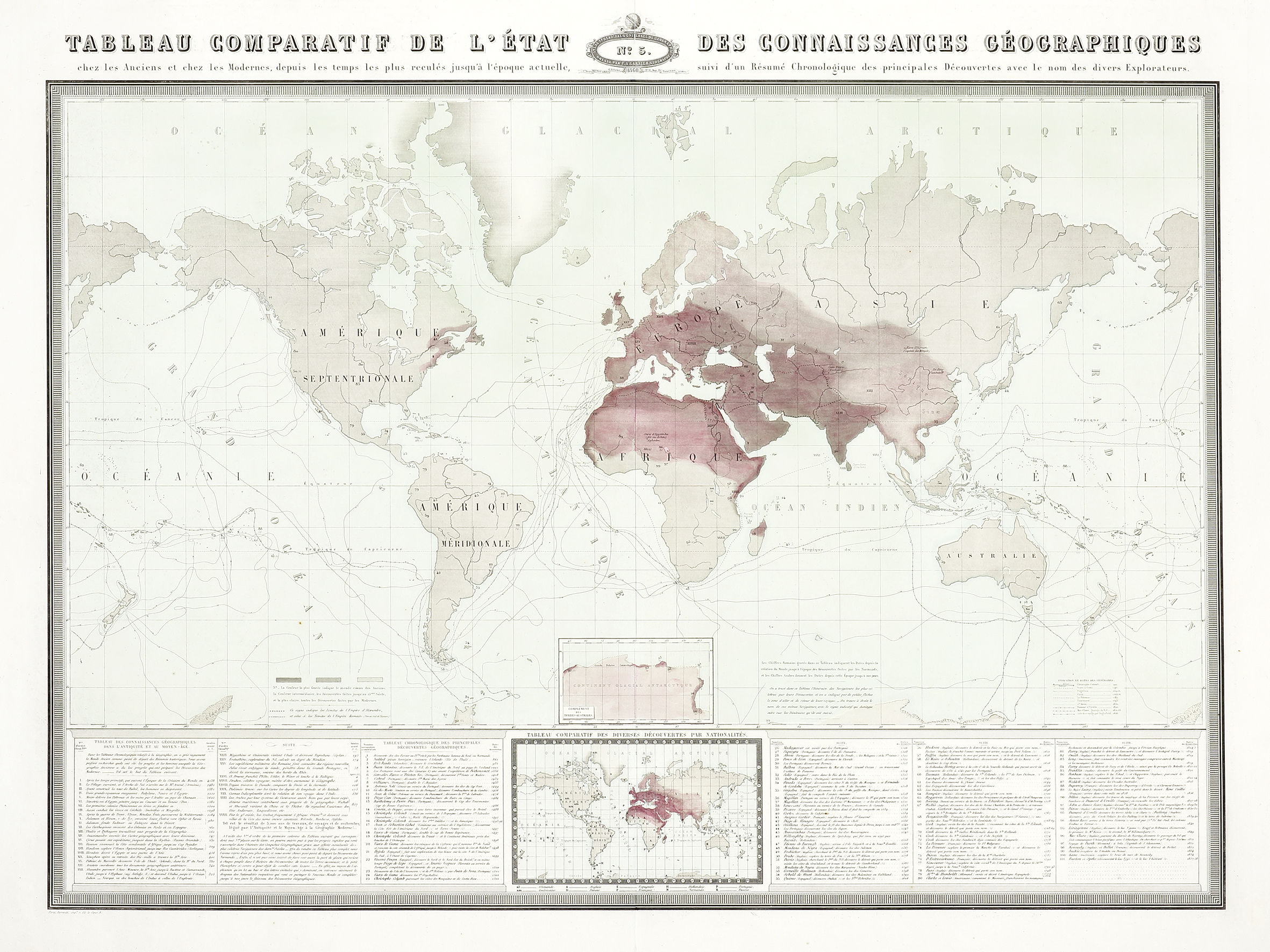 Fine large scale world map on Mercator’s Projection of the comparative Table State of Geographic Knowledge by F.A. Garnier. From; Garnier’s, Atlas spheroidal et universel de geographie dresse a l’aide des documents officiels, recemment publies en France et a l’etranger … Read Full Description