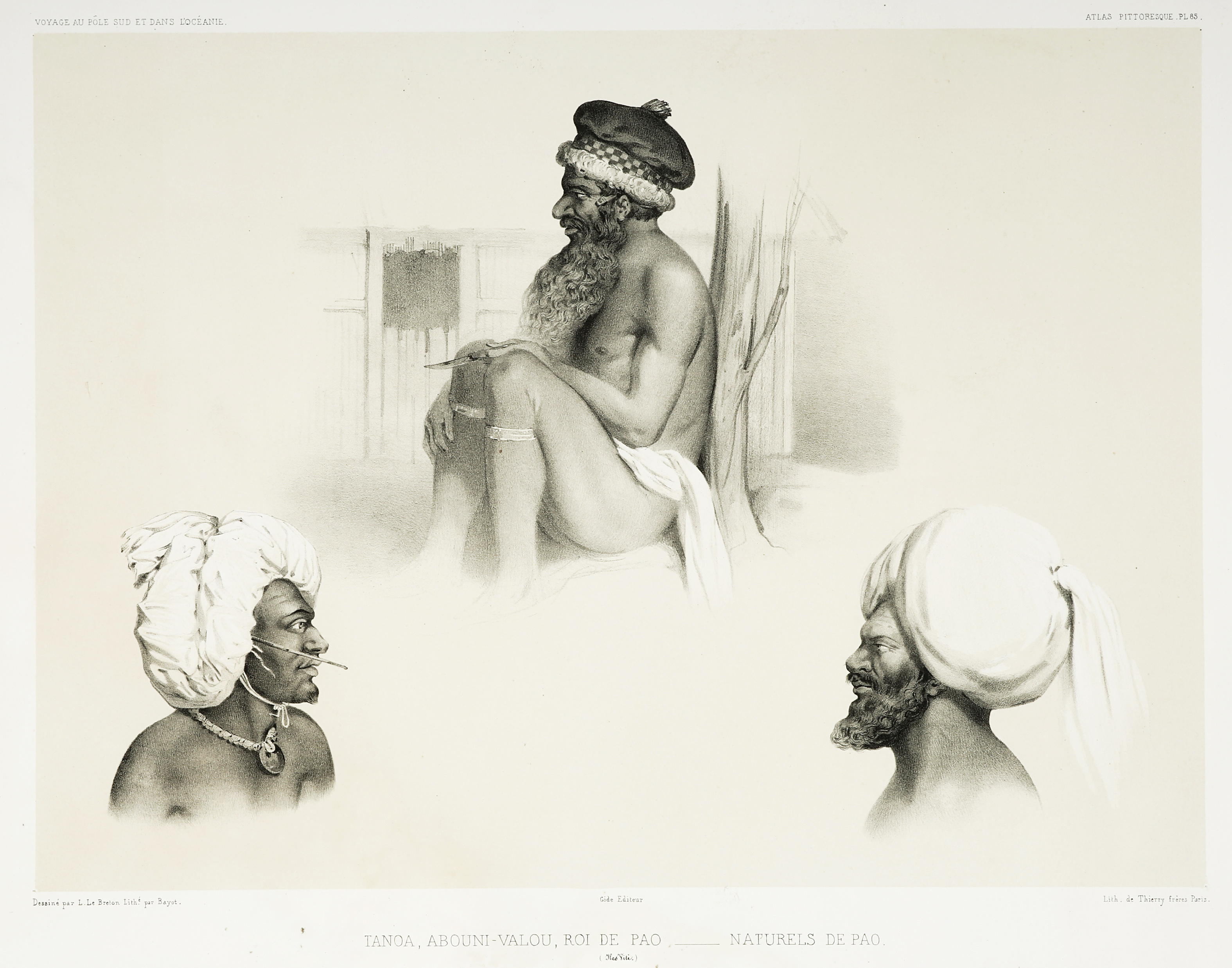Rare lithograph of Fijian natives from the final voyage of exploration under the command of Dumont D’Urville of Jolo, which is situated in the southwest Philippines to the north east of Sarawak.