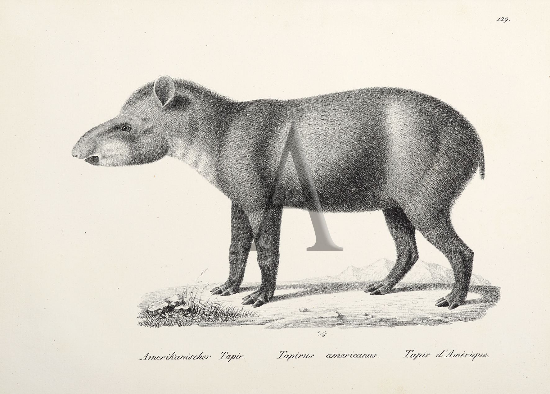 Tapirus americanus. (Tapir) - Antique Print from 1824