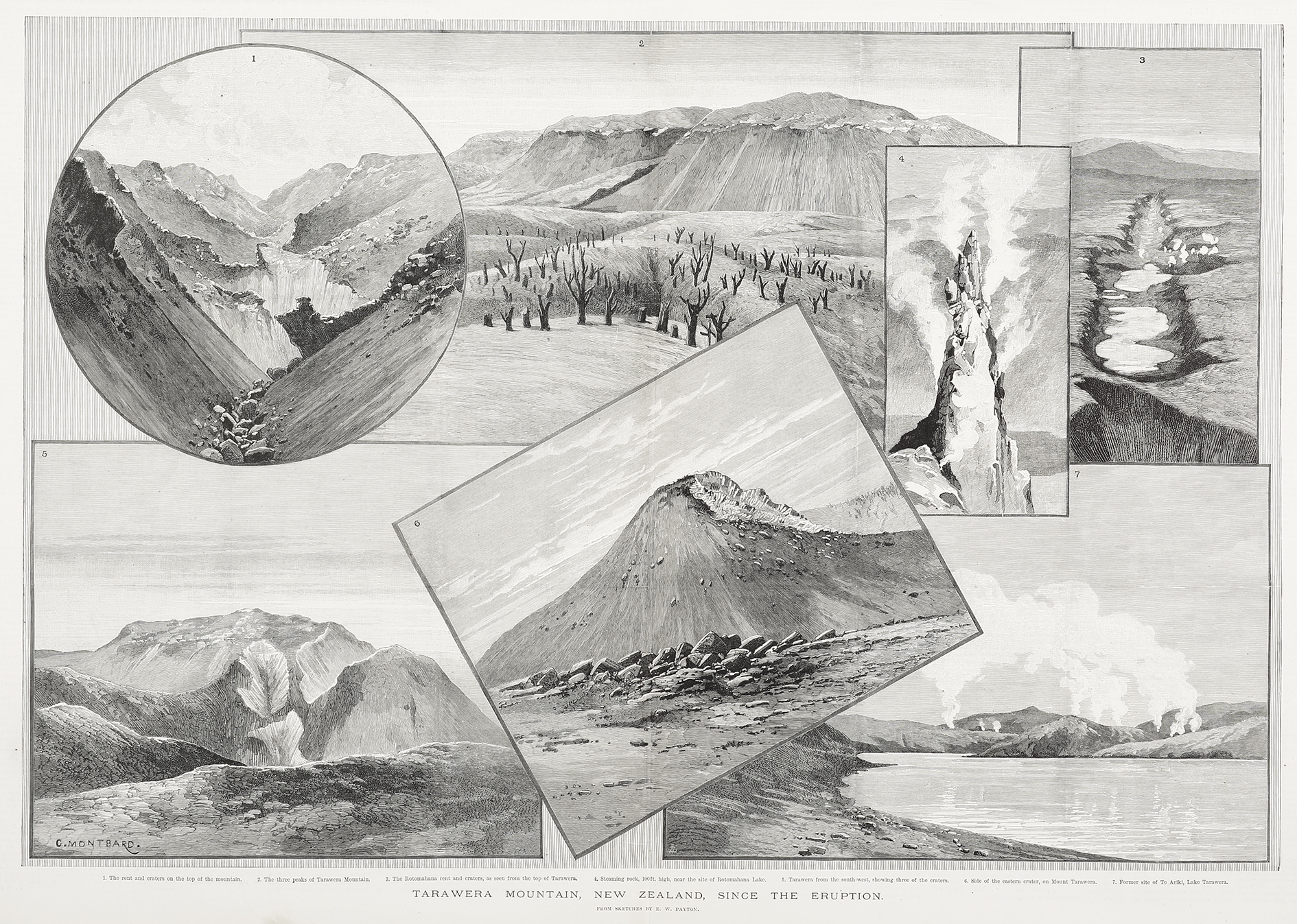Scarce engraving depicting Mount Tarawera after the eruption in 1886.