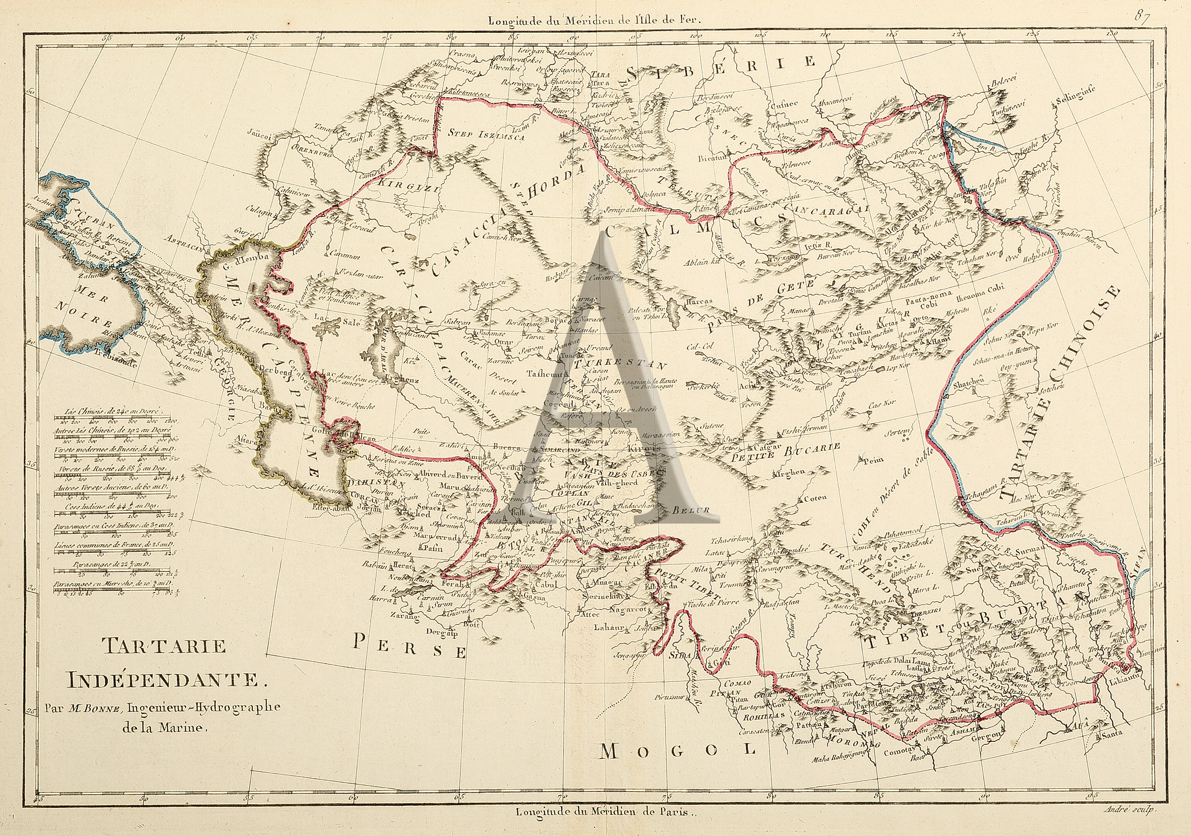 Detailed French map of Asia extending from Tibet to Siberia and from the Caspian Sea to western China. Rigorbet Bonne was celebrated French mapmaker born in the village of Raucourt in the Ardennes and died in Paris in 1794. This … Read Full Description