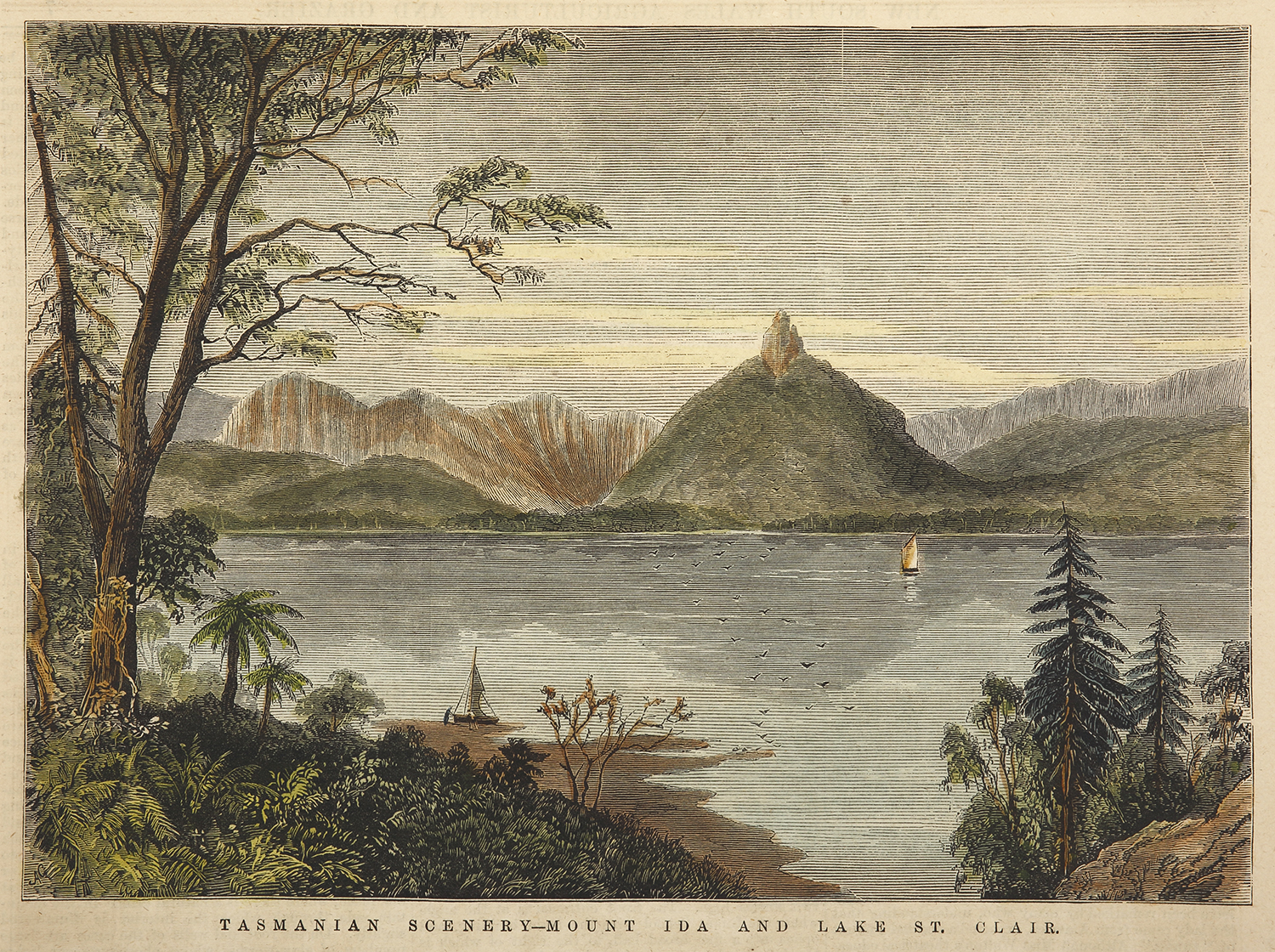 Scarce colonial engraved view of Lake Clair in the Cradle Mountain National Park, Tasmania. From the original edition of The Illustrated Sydney News. Collections: State Library New South Wales: F8/39-40 State Library Victoria: PCINF SLVIC=1853-1872 National Library Australia: Bib ID 440095