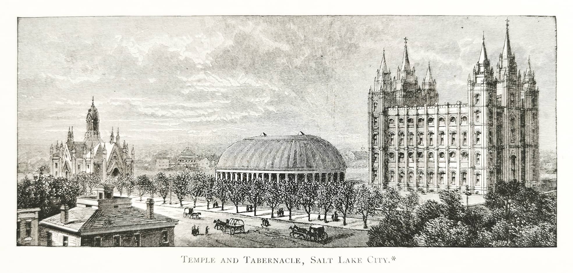 Engraving of Temple and Tabernacle, in Salt Lake City, Ohio.