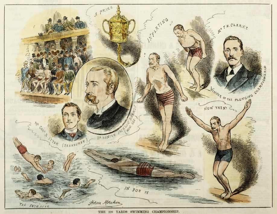 Scarce early swimming engraving from the original edition of the Sporting and Dramatic News. These images were produced to satisfy the ongoing interest in various sports in England.
