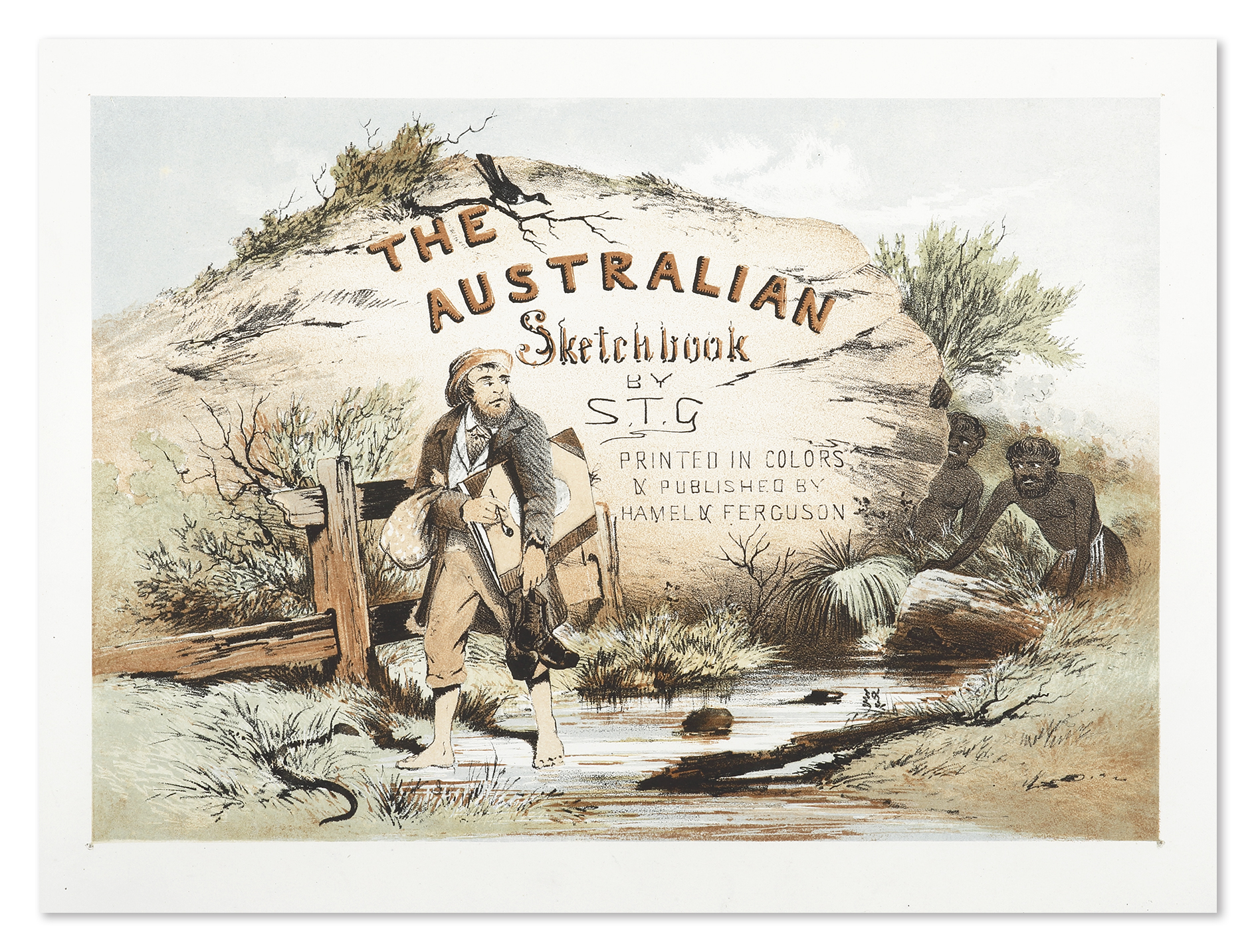 Title page from Samuel Thomas Gill’s, The Australian Sketch Book. Collections: National Gallery of Australia: NGA 77.100.1National Library of Australia: Bib ID1445743State Library of Victoria: Accession no: H17157