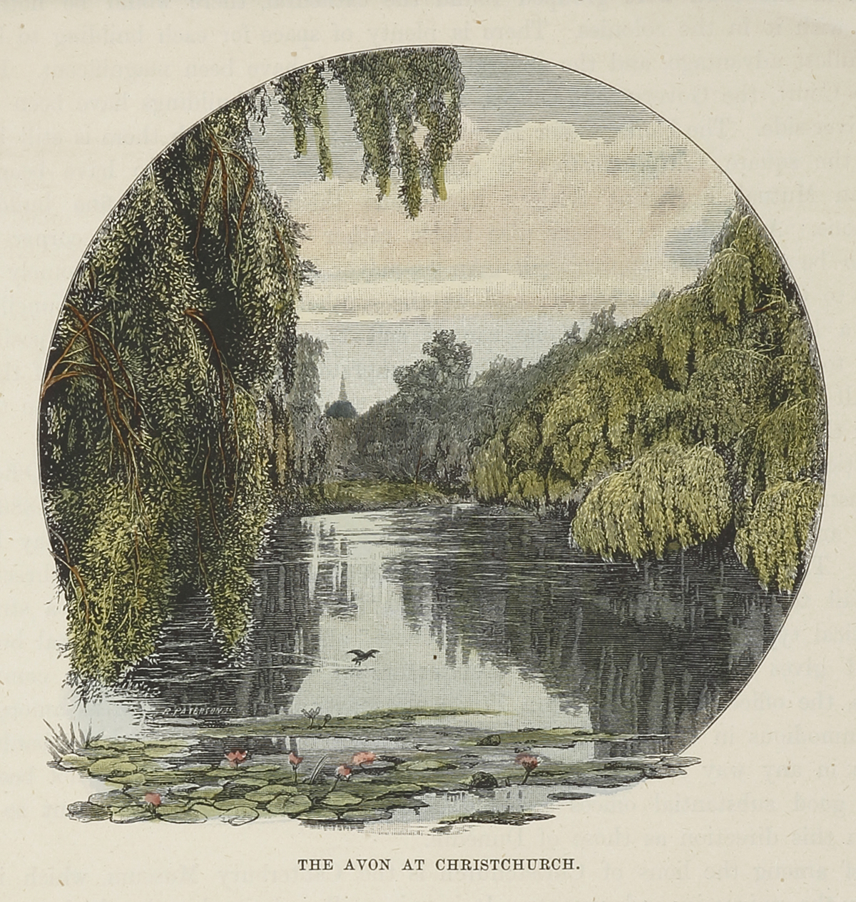 Colonial engraved view of the Avon river, Christchurch.