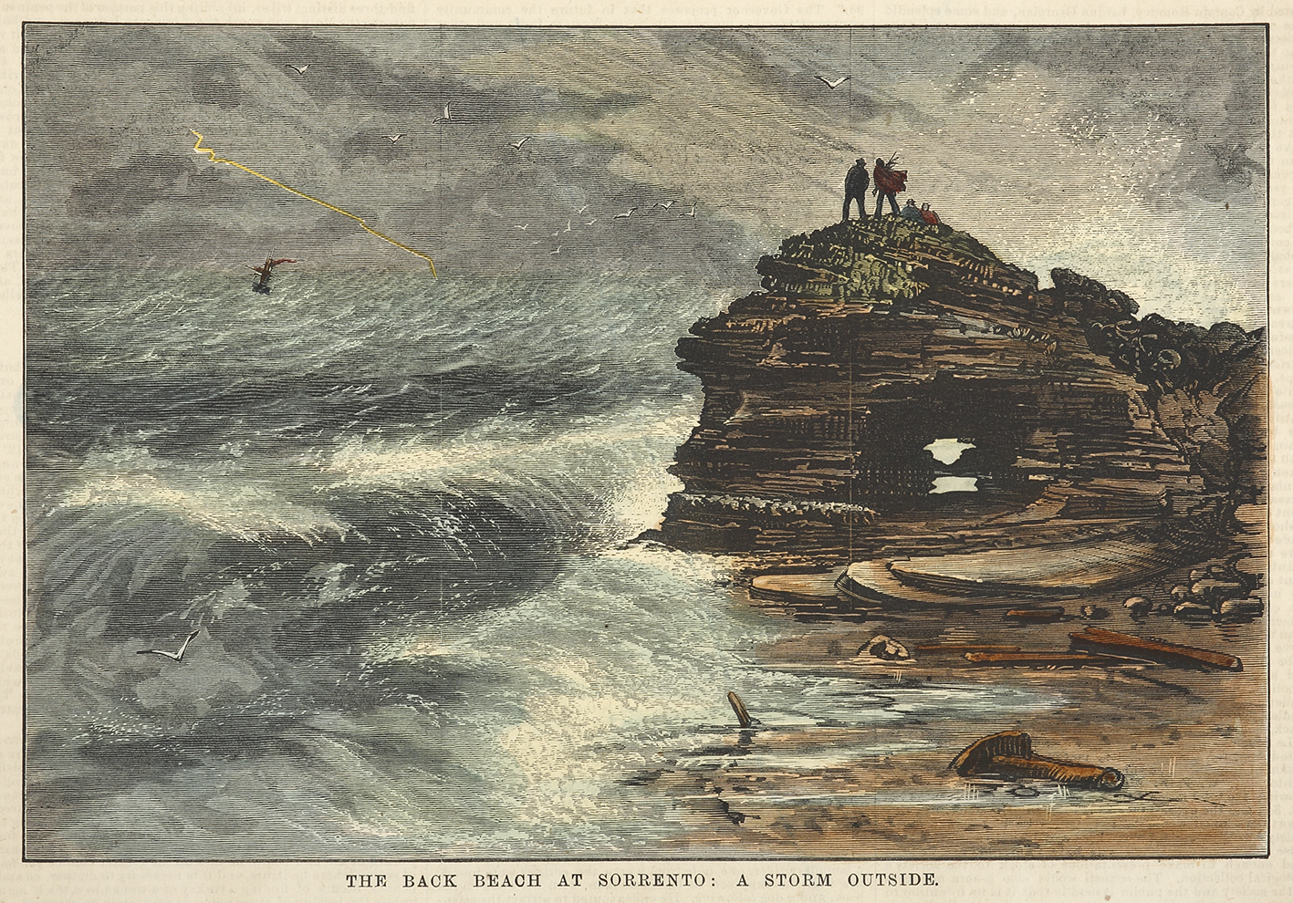 Scarce engraving of Back Beach, Sorrento, Victoria. From the original edition of The Australasian Sketcher.