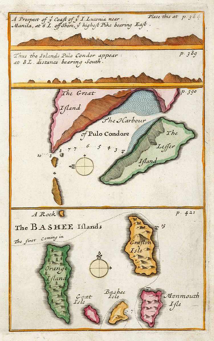 Scarce map of: The Bashee Islands (Philippines) Pulo Conor in the South China Sea. In 1702, the English East India Company founded a settlement on this island (the English called it ‘Pulo Condore’ after its Malay name) off the south coast … Read Full Description