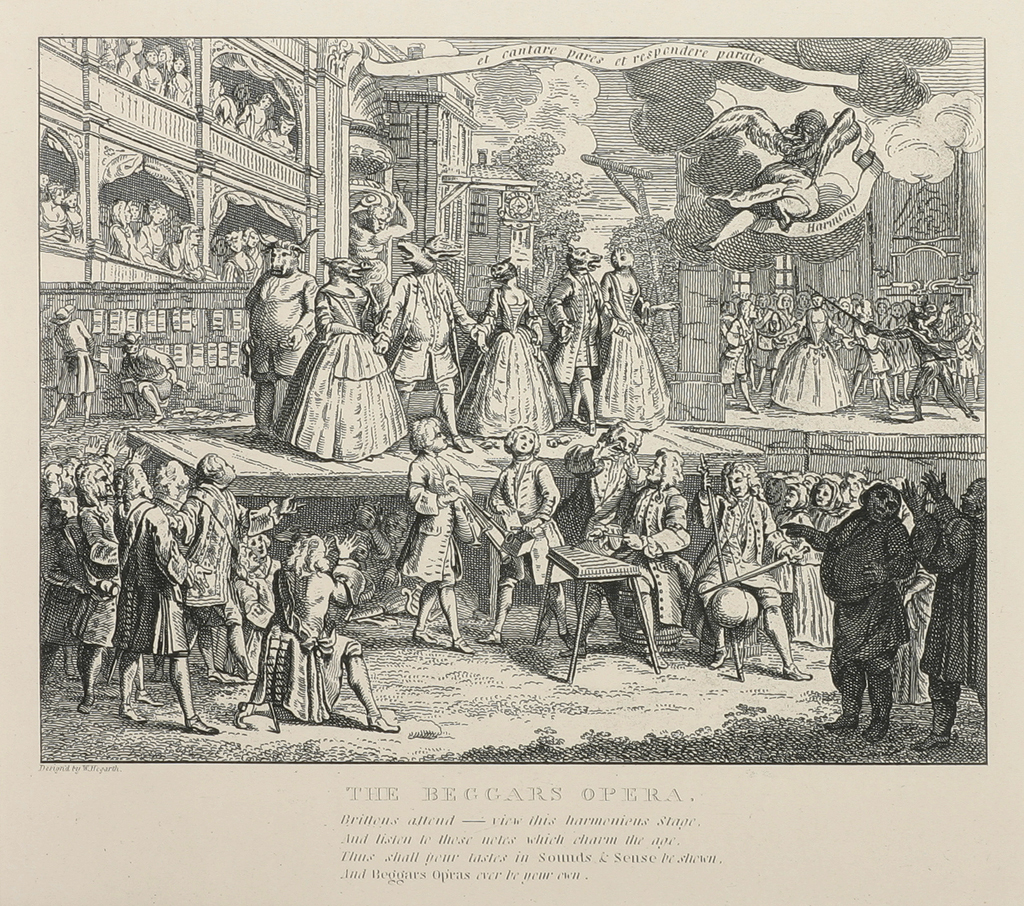 Hograrth’s satire on Gay’s “Beggar’s Opera”. In the foreground a group of