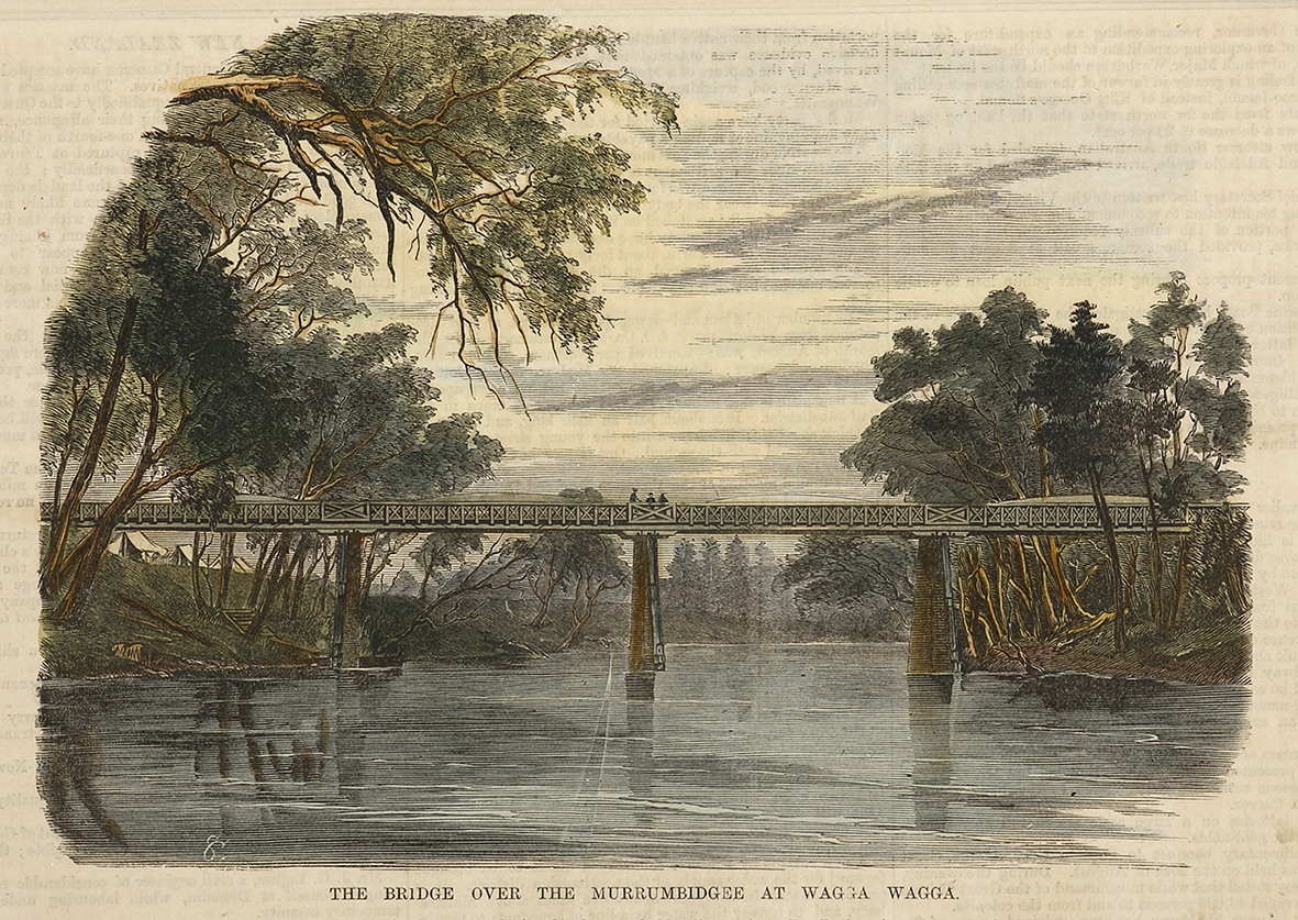 Rare engraving of the Murrumbidgee Railway Bridge at Wagga.