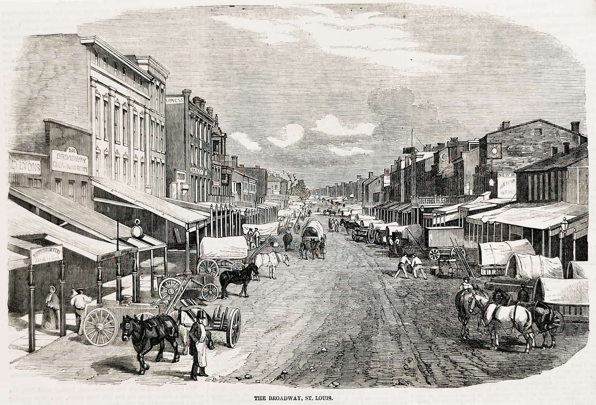 The Broadway, St. Louis. - Antique Print from 1858