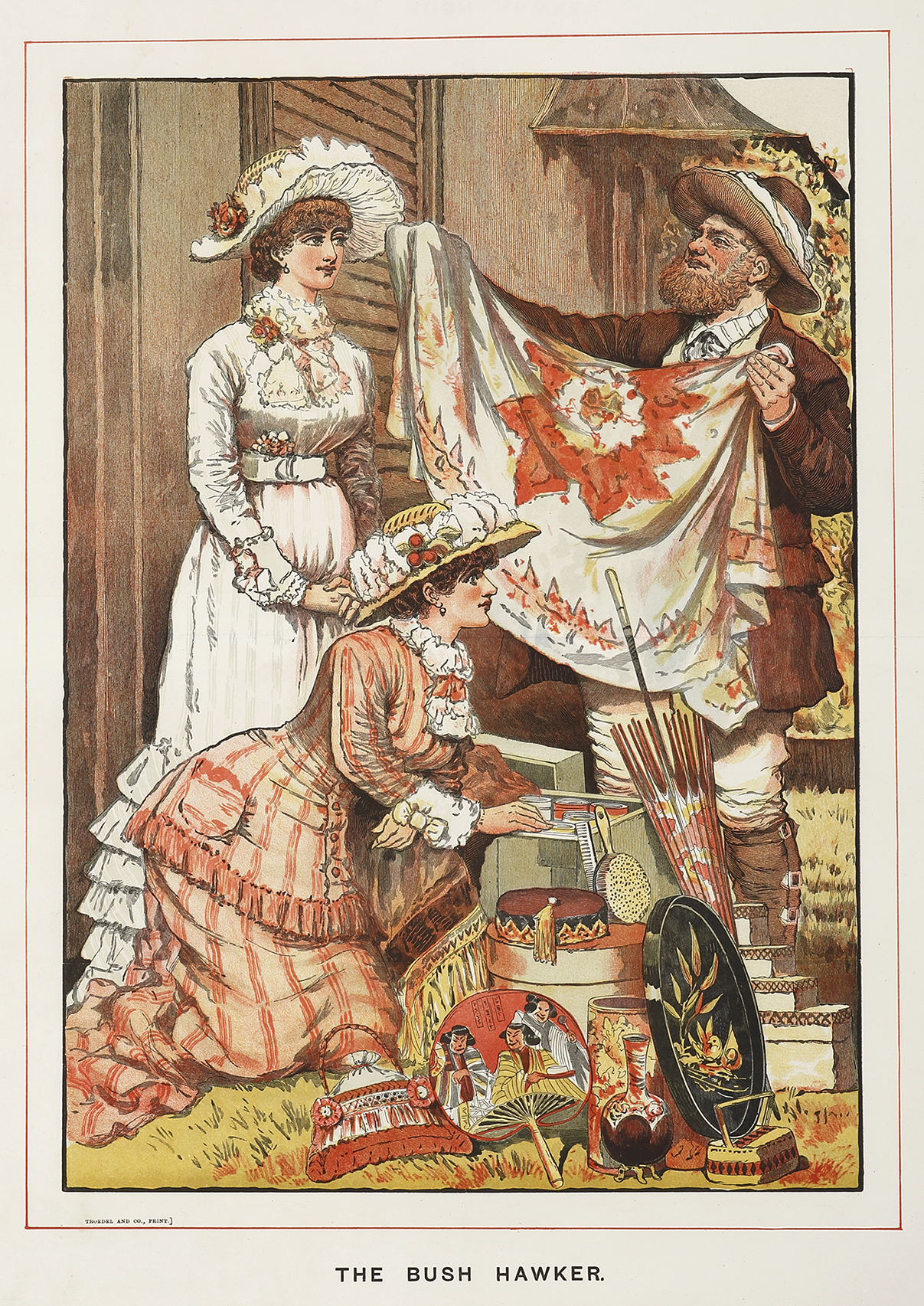Rare supplement of an Australian bush hawker showing his wares which prominently feature Chinese or Japanese goods.