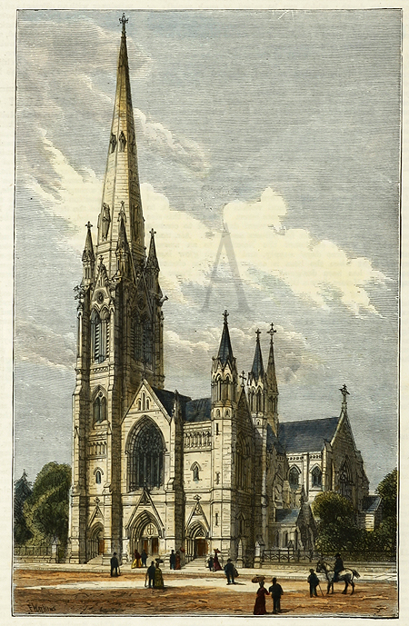 Early engraving of Ballarat Cathedral. The cathedral was designed by William Wardell, an English architect who also designed St. Patrick’s Cathedral in Melbourne. Construction on the cathedral began in 1858 and was completed in 1977. The cathedral’s spire was not … Read Full Description