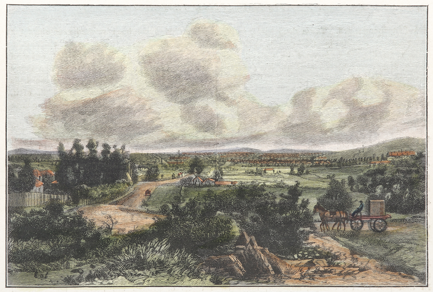 Colonial engraved view of Ballarat from Warrenheip now an eastern suburb of Ballarat.
