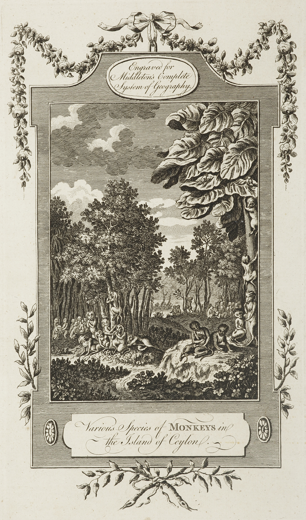 Scene showing various species of monkeys in Ceylon. From Charles Theodore Middleton’s A Complete System of Geography.