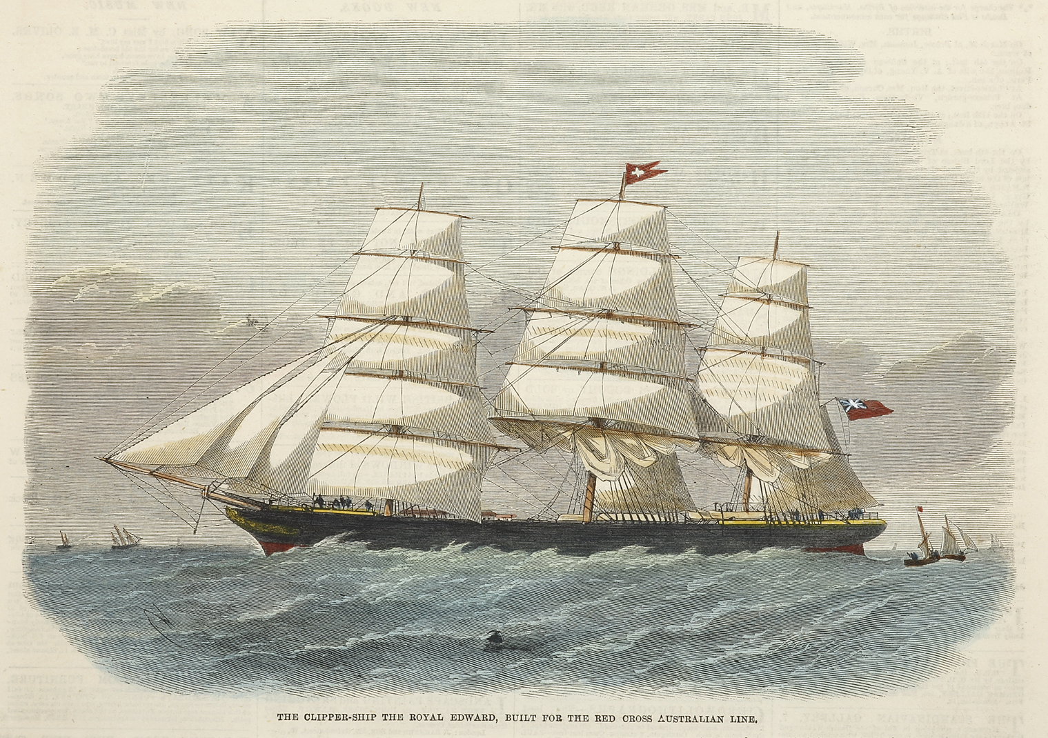 Scarce c.19th engraving of the Royal Edward, a clipper ship built for the Australian Red Cross. From the original edition of the Illustrated London News.