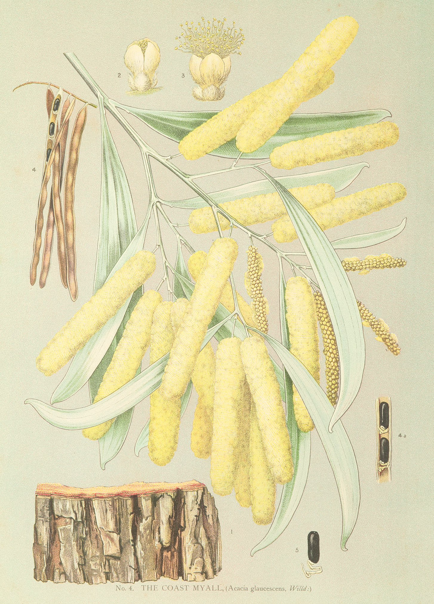 Scarce c.19th lithograph by Joseph Myall of the coastal Myall. Modern binomial name: Acacia binervia First described: Johann Christoph Wendland 1798 Distribution: NSW, VIC. Found in central New South Wales from the Hunter Valley south, and to Bungonia in the … Read Full Description