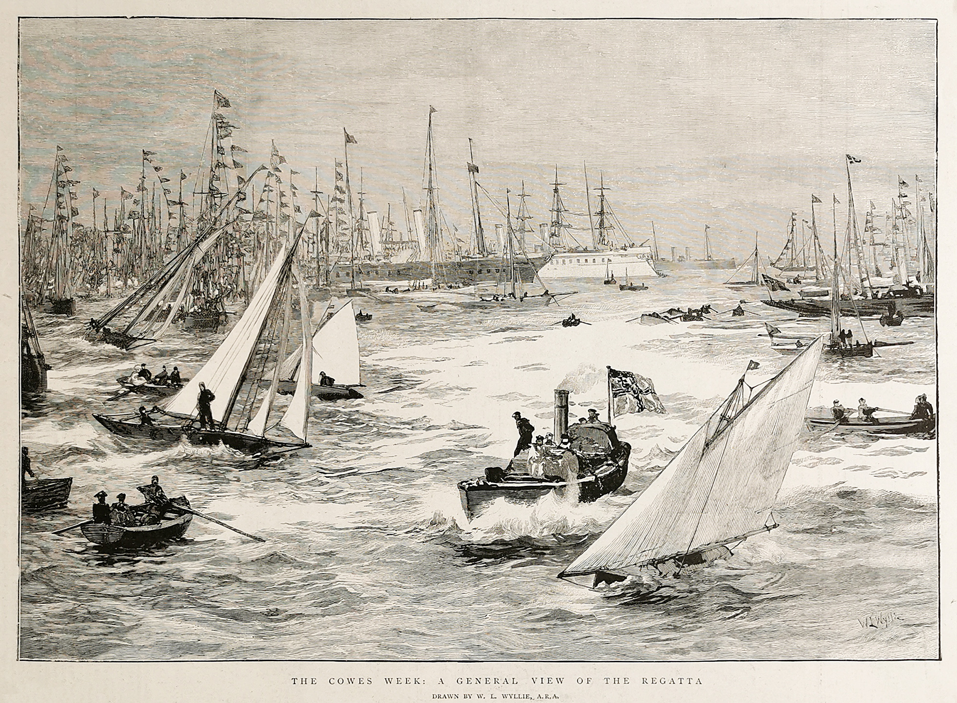 Engraving of a yacht race at Cowes. From the original edition of The Graphic.