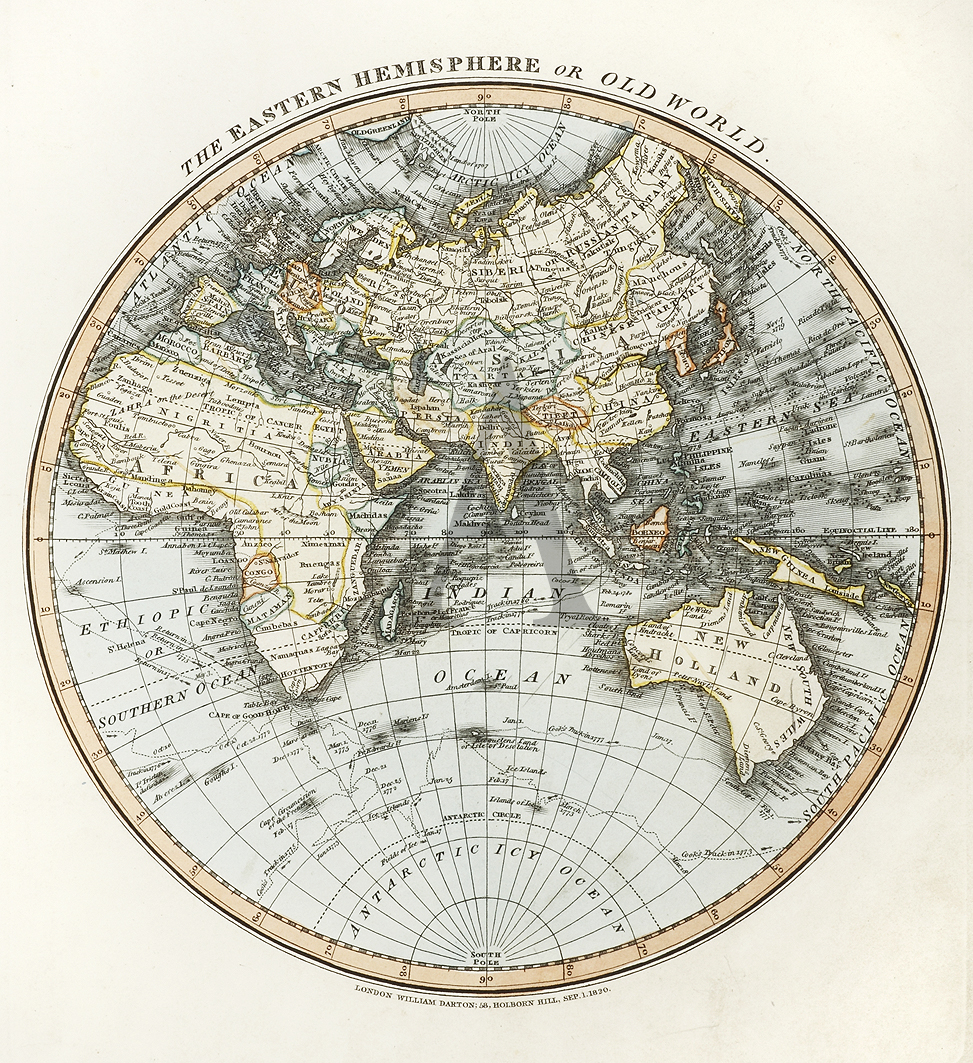 Interesting map of the eastern hemisphere showing Australia with an an imaginary southern coastline, although both Freycinet and Flinders both had published charts of it by 1814. A number of explorers tracks are also shown.