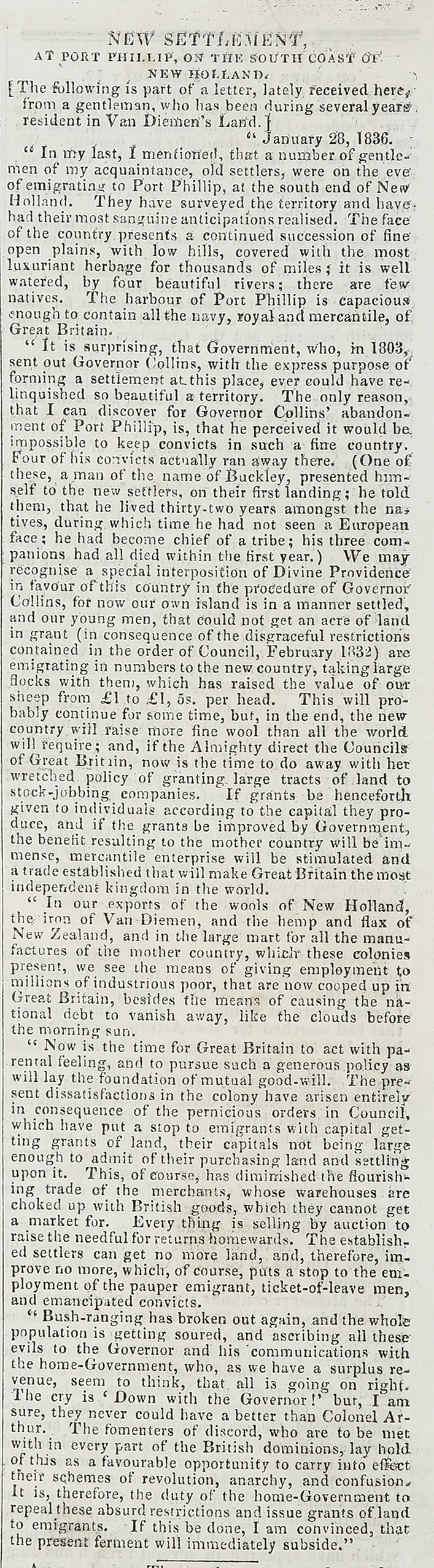 An early account of Port Phillip Bay in, The Edinburgh Evening Courant, Monday July 18th, 1836.