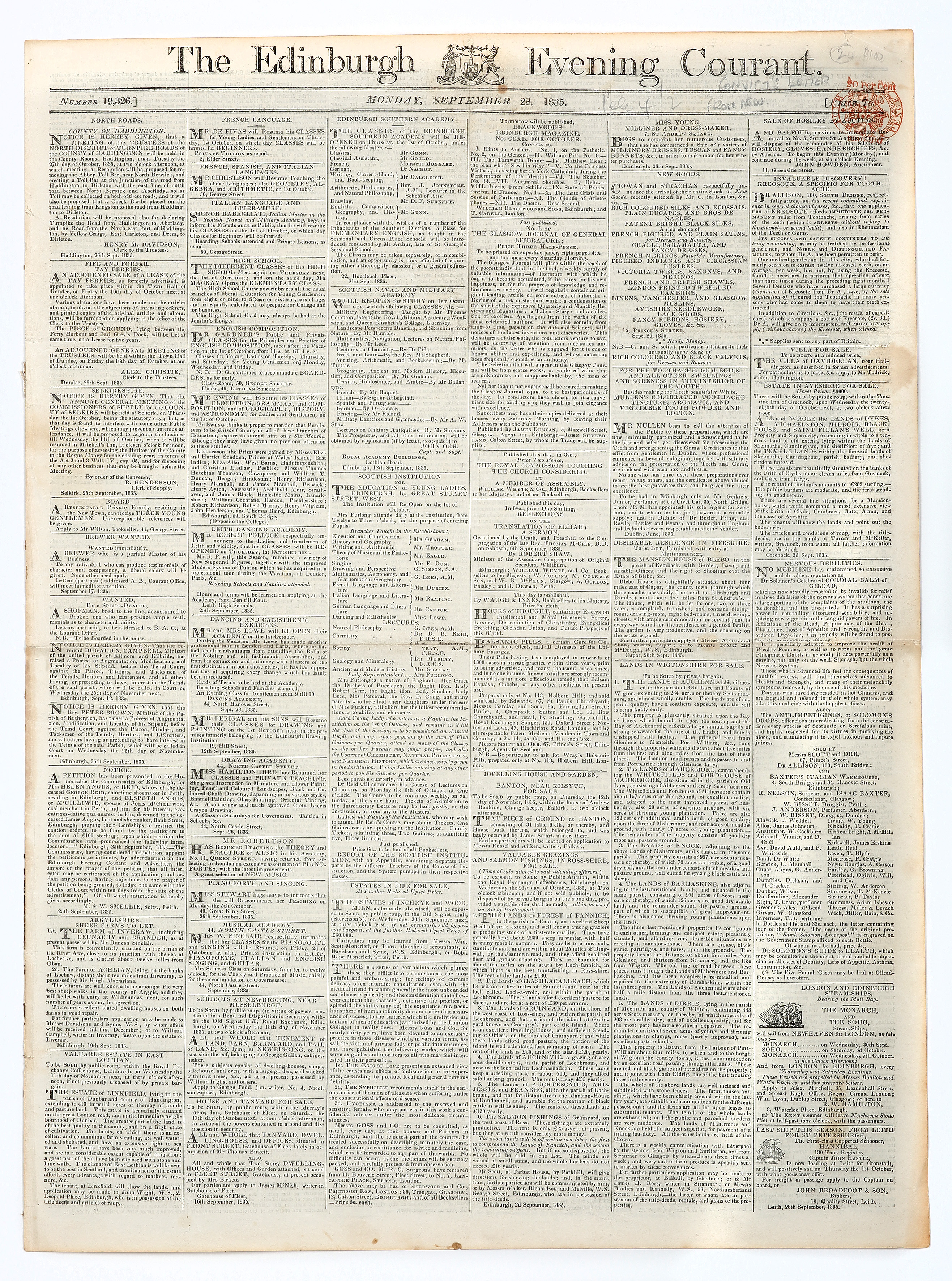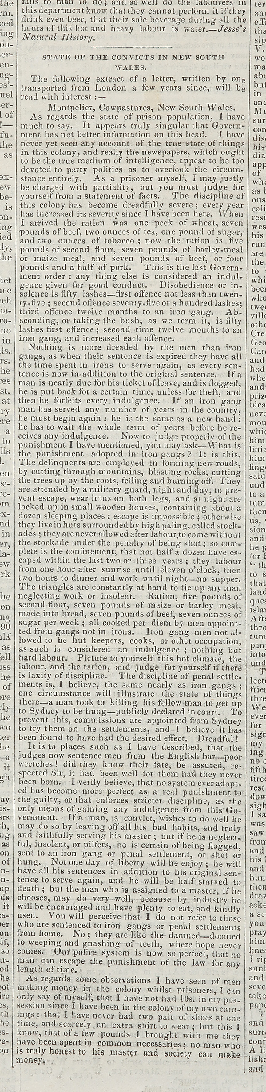 The Edinburgh Evening Courant for Monday 28th September, 1835. with a copy of a long letter on page 4 written by “one transported from London a few years since,…”