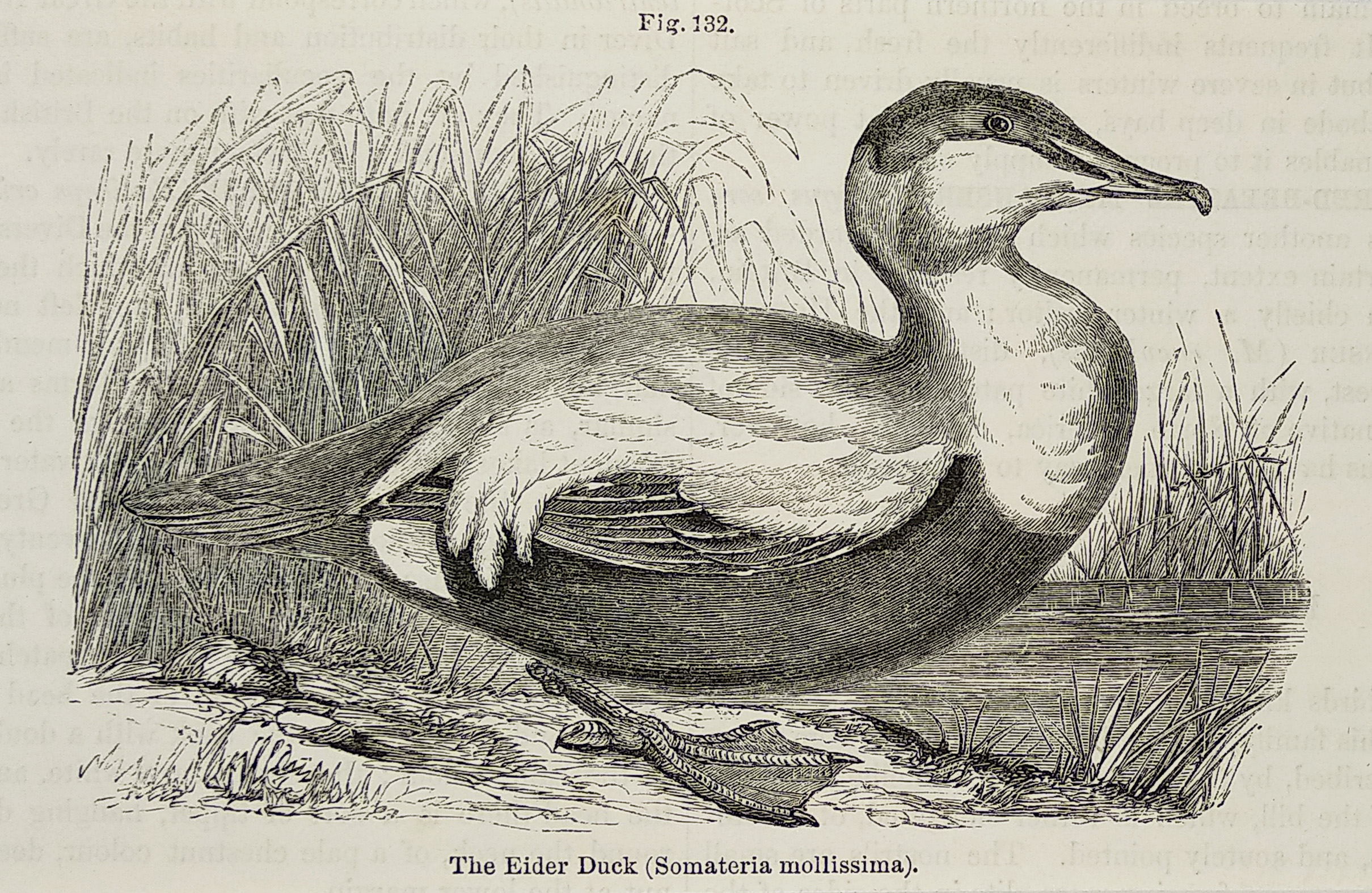 The Eider Duck (Somateria mollissima). - Antique Print from 1886