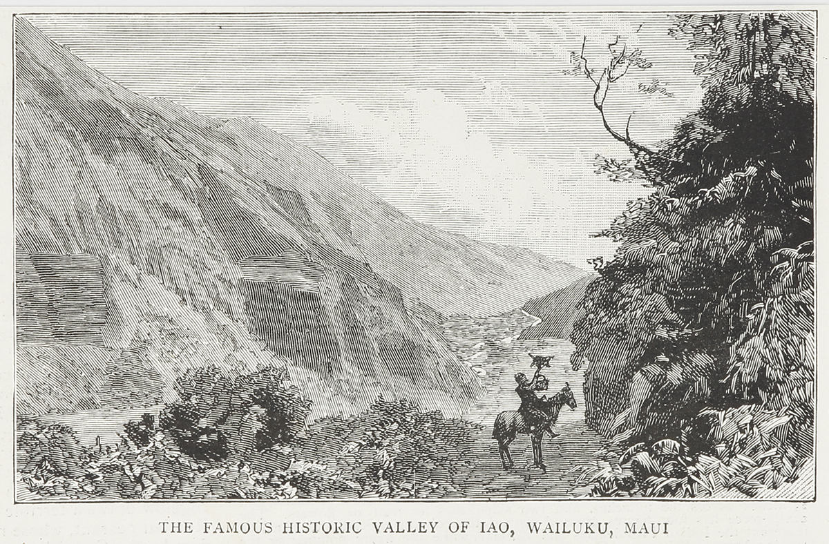 Small C1th century view of the Valley of Iao, on the Hawaiian island of Maui. From the original edition of The Graphic. Collections: State Library New South Wales: CALL NUMBERS TF00009 National Library Australia: Bib ID 2855507 State Library Victoria: … Read Full Description