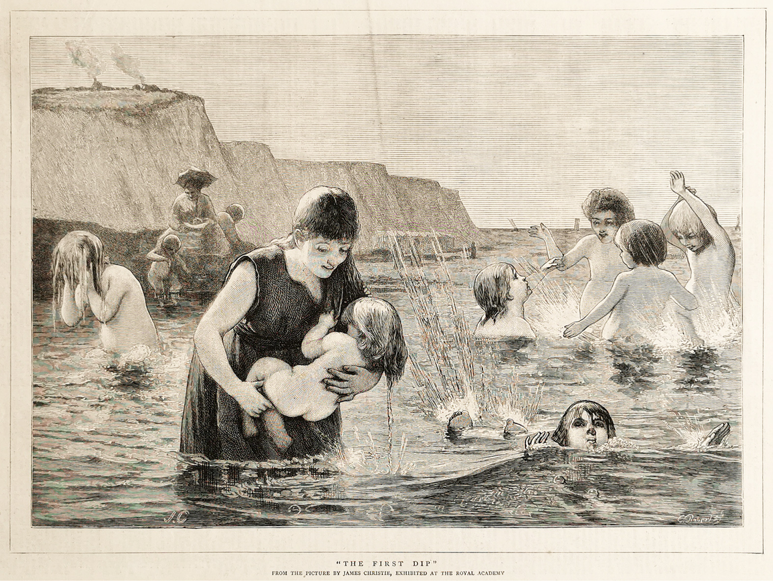 Scarce swimming engraving fom the original edition of the The Graphic.