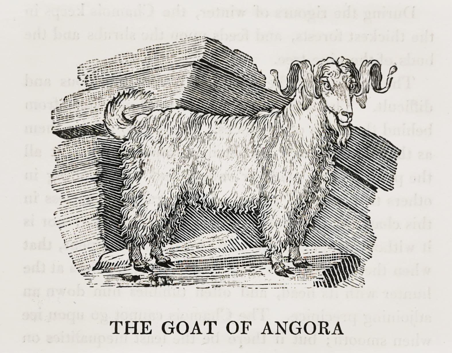 Miniature wood engraving by the famous artist and engraver, Thomas Bewick (1753-1828) of an Angora goat.