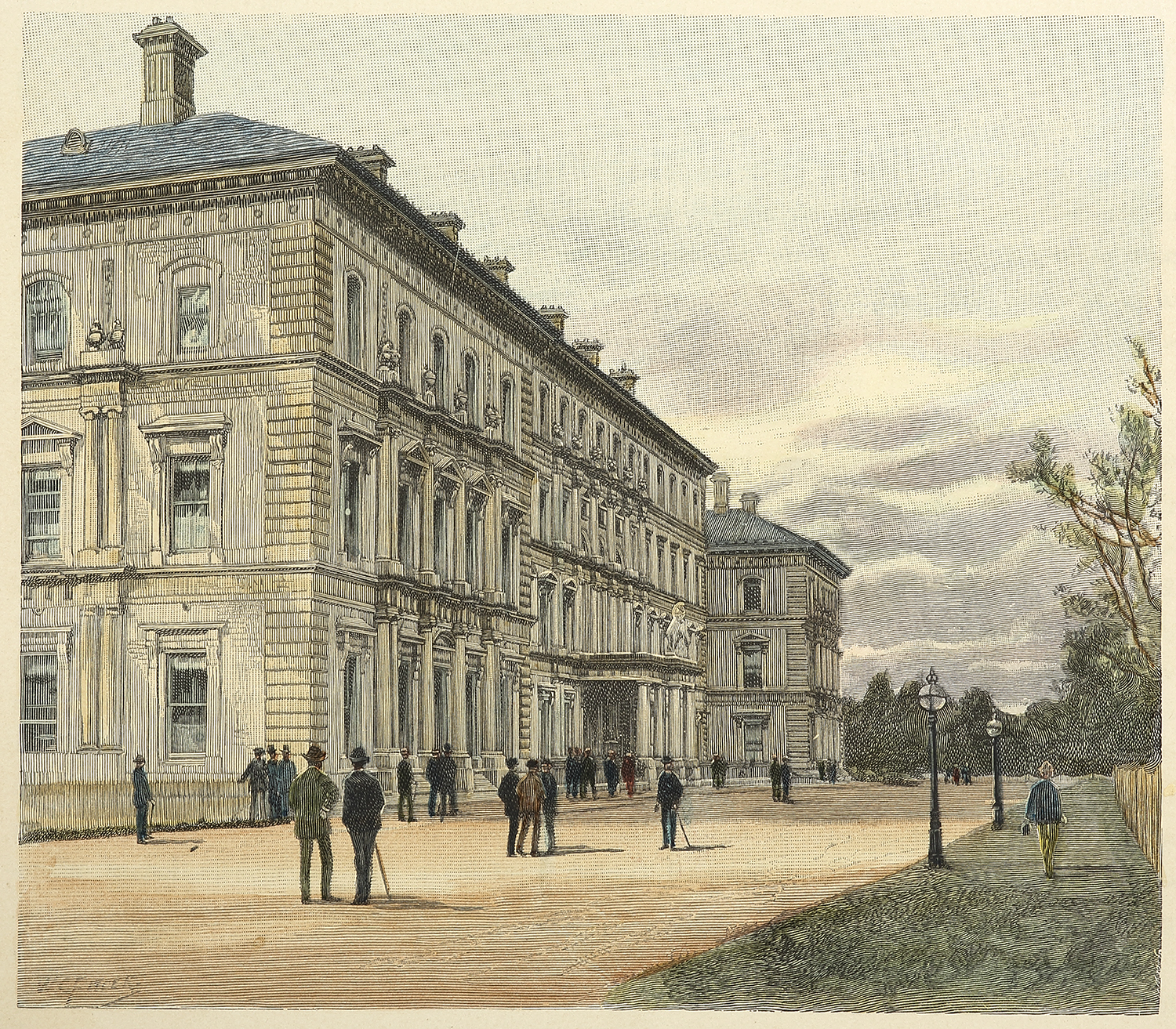 Colonial engraving of the Government offices Melbourne.