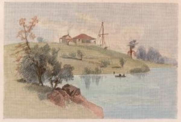 Colonial engraving of the Government residence on Thursday Island. The island was selected as the administrative site for the representatives of the Queensland Government in 1875.
