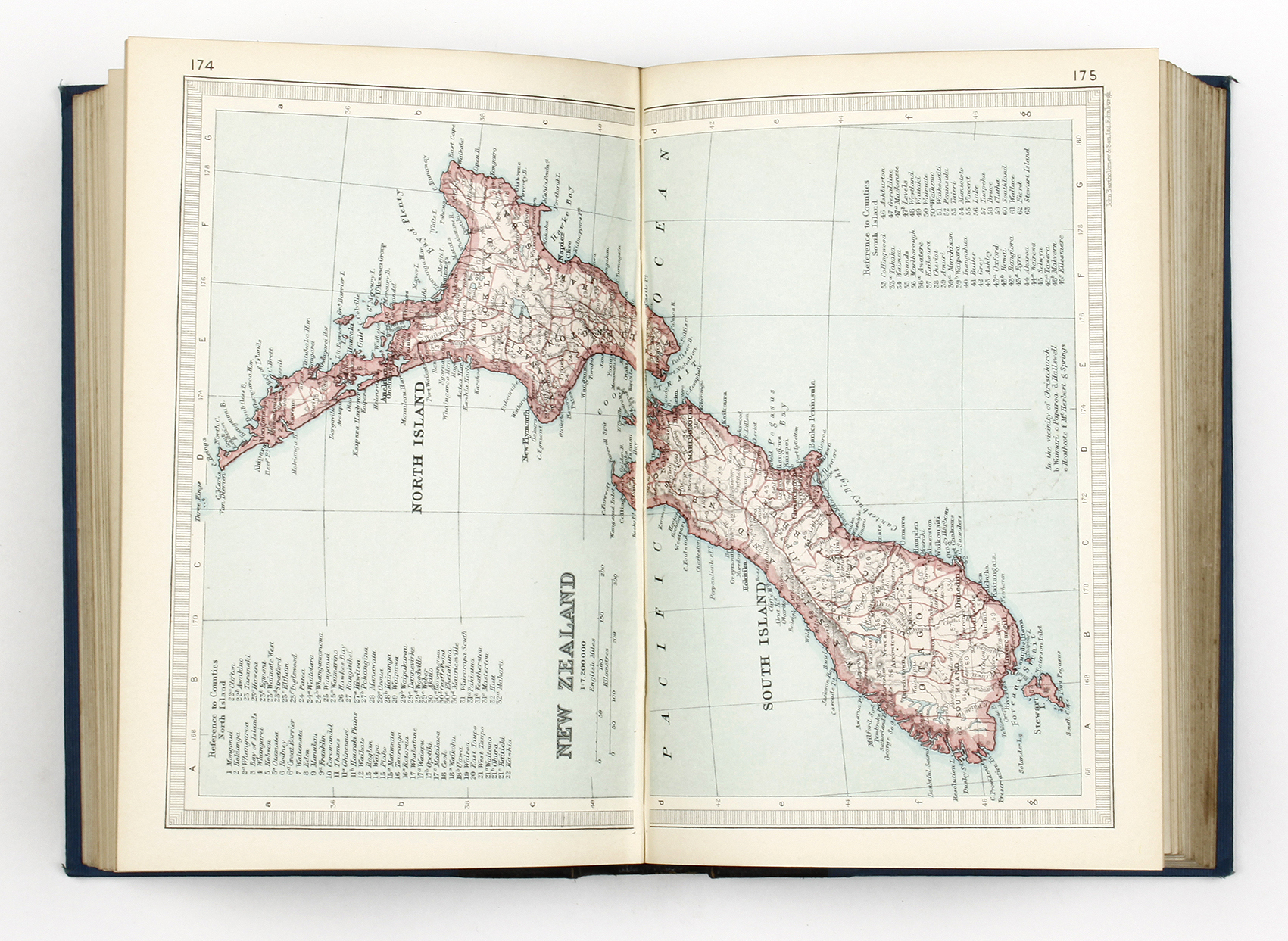 Detailed small atlas of the world with numerous coloured maps. The gazetteer comprises of 66 pages, followed by 224 pages of maps a number of these being double page maps and the general index that follows the maps is 172 … Read Full Description