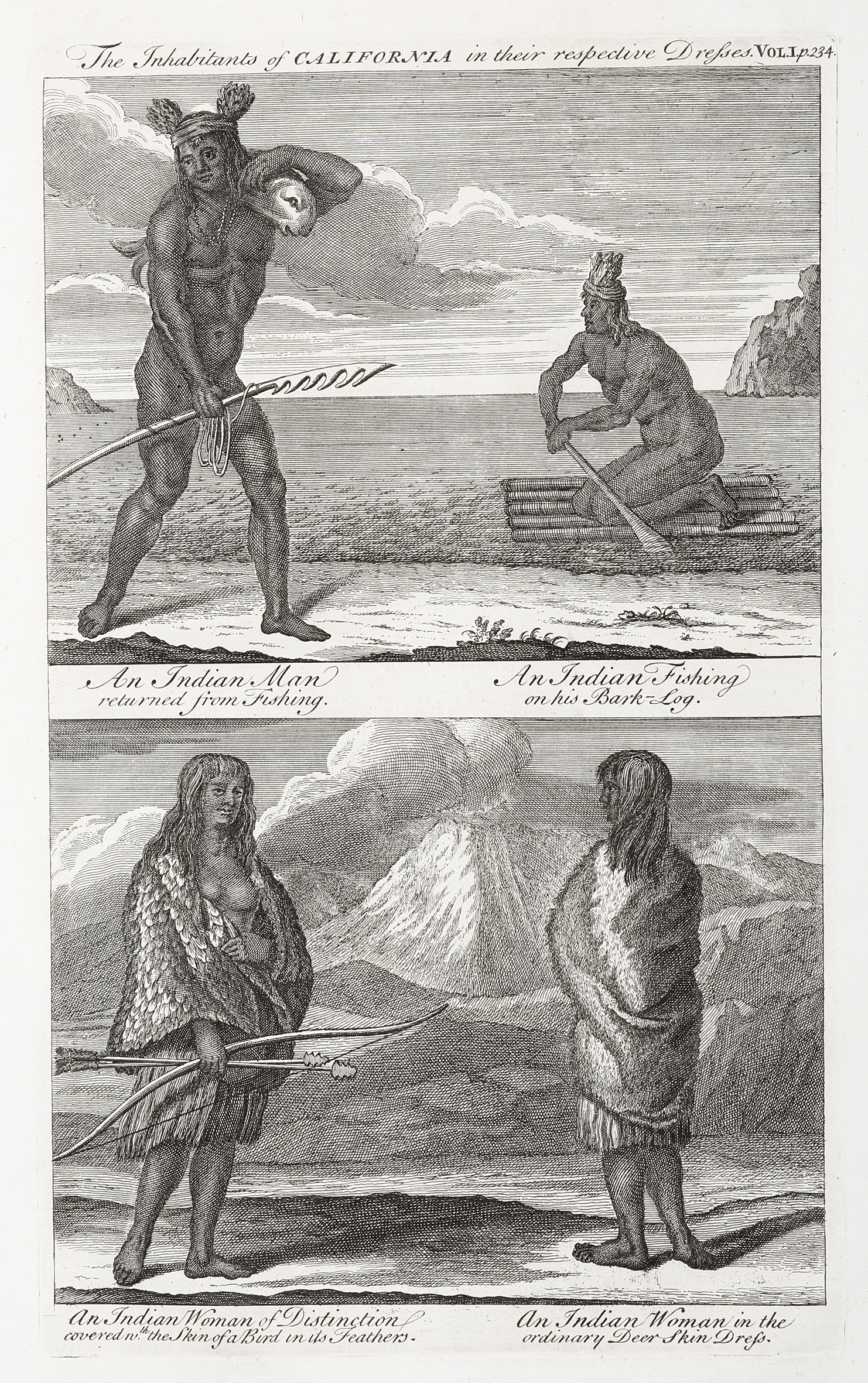 Rare C18th engraving of Californian Indians. From Harris’s, Navigantium atque itinerantium bibliotheca or, a Complete Collection of Voyages and Travel.