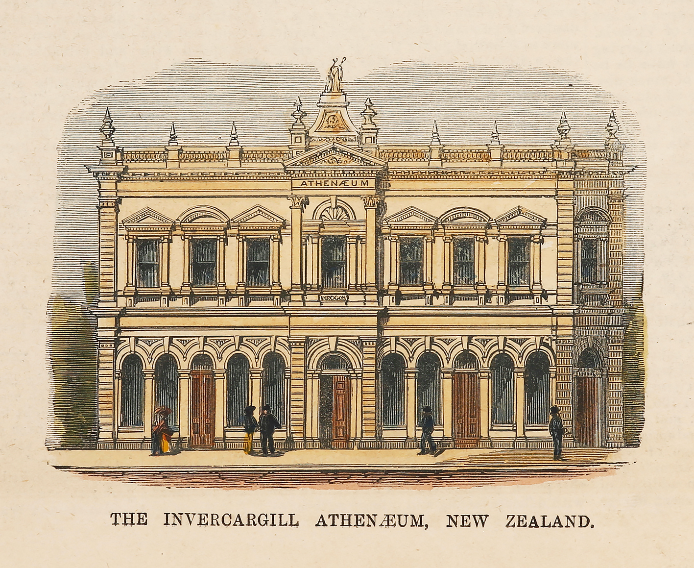 Scarce, c.19th hand coloured engraving of the Invercargill’s, Athenaeum