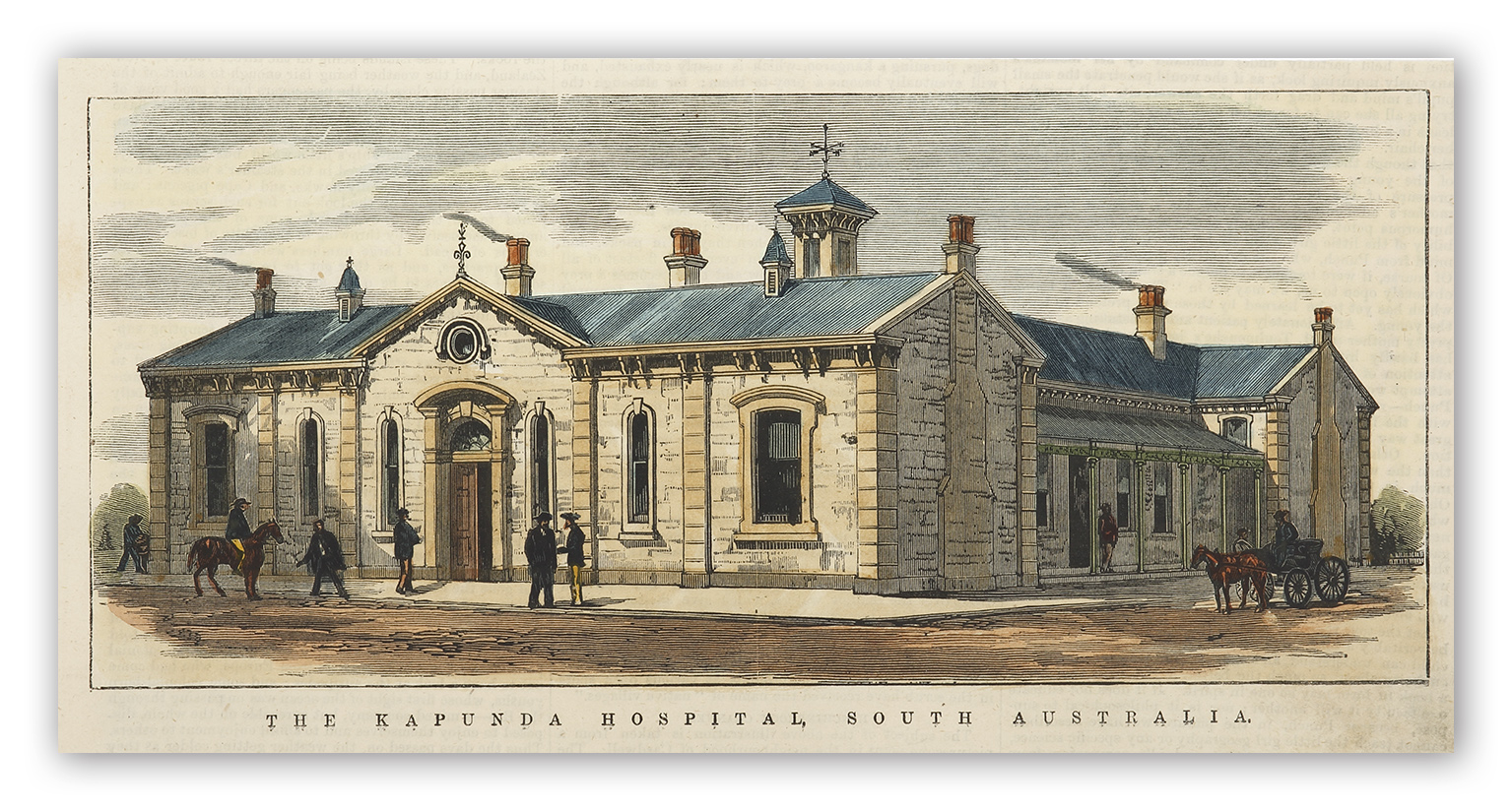 Colonial engraving showing of the Kapunda Hospital, South Australia. From the original edition of the Illustrated Sydney News.