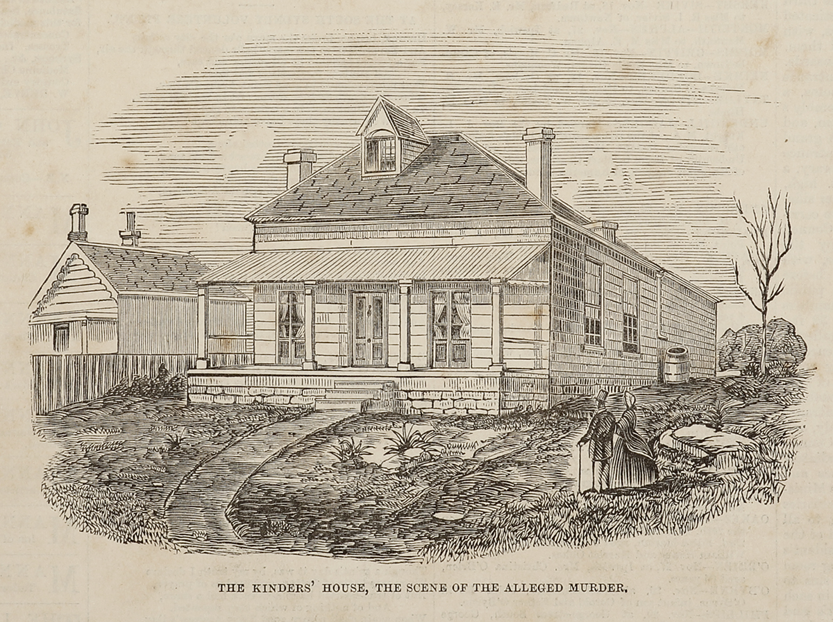 Scarce c.19th engraving of the Kinder’s house at St. Leonard’s where Henry Kinder was murdered by Henry Louis Bertrand. Henry Louis Bertrand known as the ‘Mad Dentist of Wynyard Square’, was convicted of the murder of Henry Kinder, who died … Read Full Description
