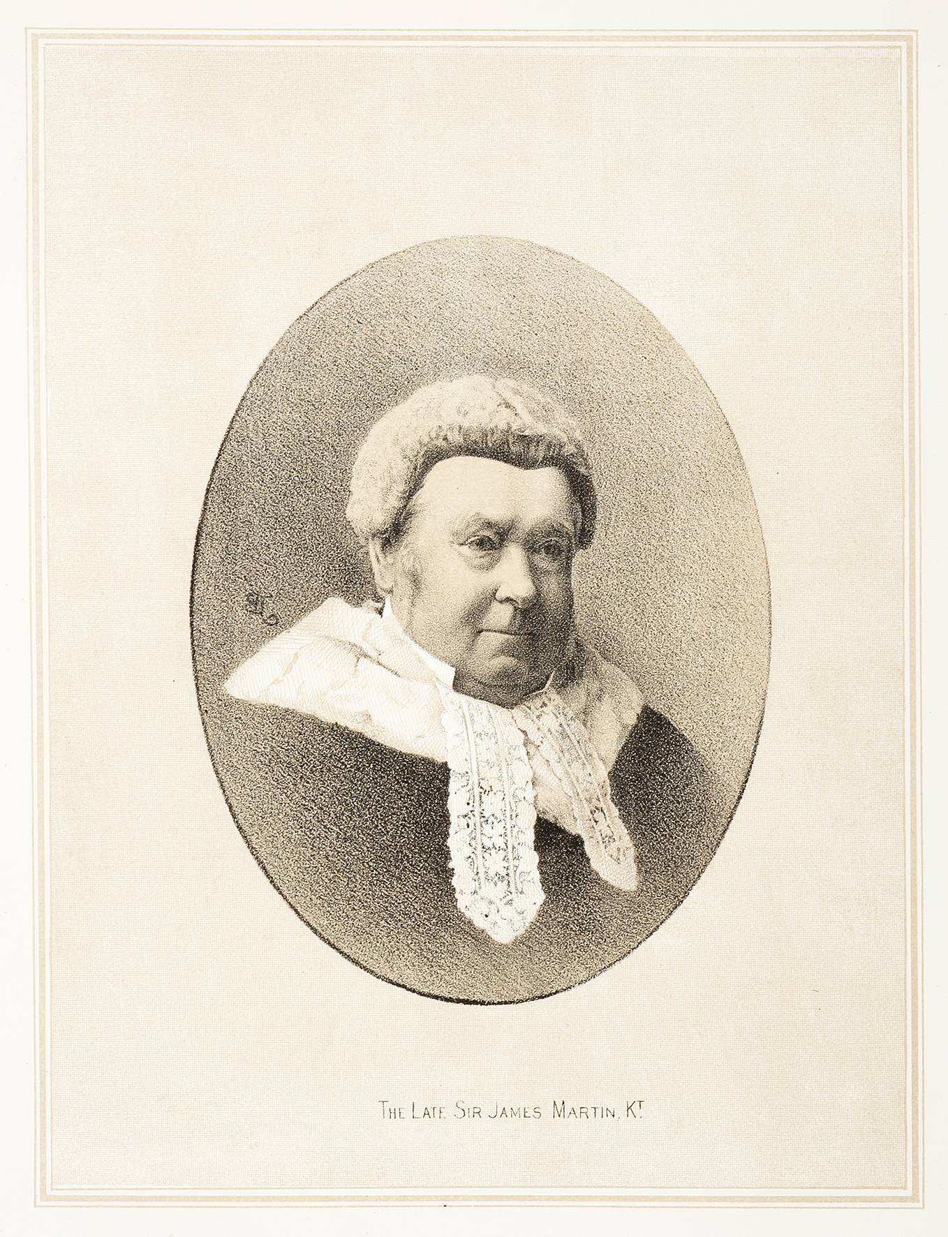C.19th lithographed portrait of Sir James Martin, KCB, QC (1820-1886), three times Premier of New South Wales and Chief Justice of the Supreme Court of New South Wales from 1873 to 1886.