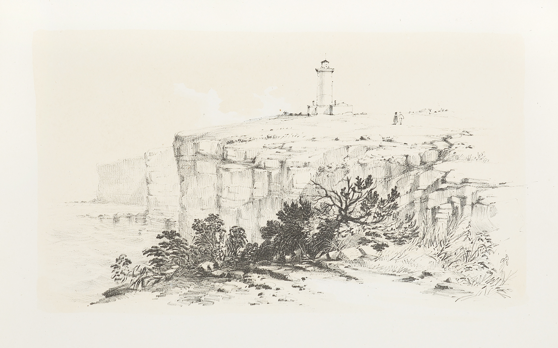 Rare, c.19th lithograph view by Conrad Martens (1801-1878) of South Head and Macquarie Lighthouse.