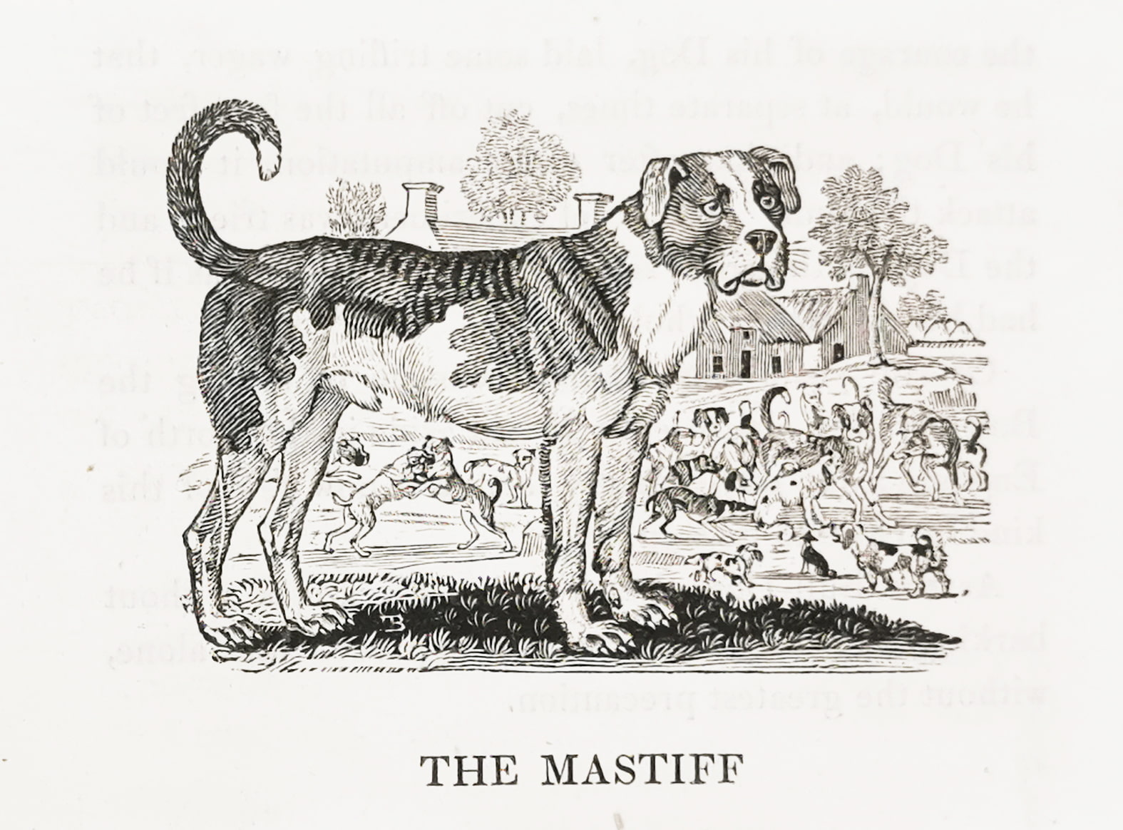Miniature wood engraving by the famous artist and engraver, Thomas Bewick (1753-1828) of a Mastiff.
