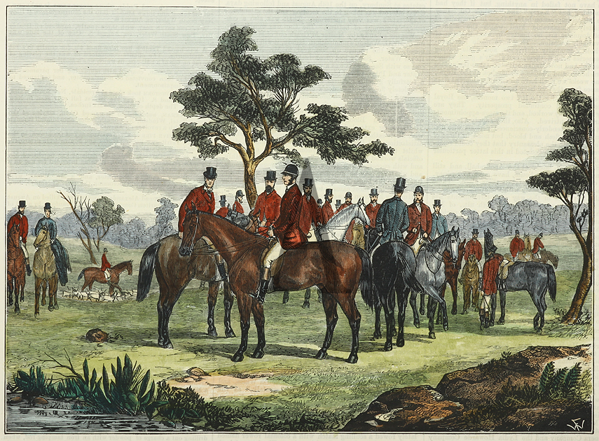 Scarce colonial engraving of the Melbourne Hunt club in 1875.