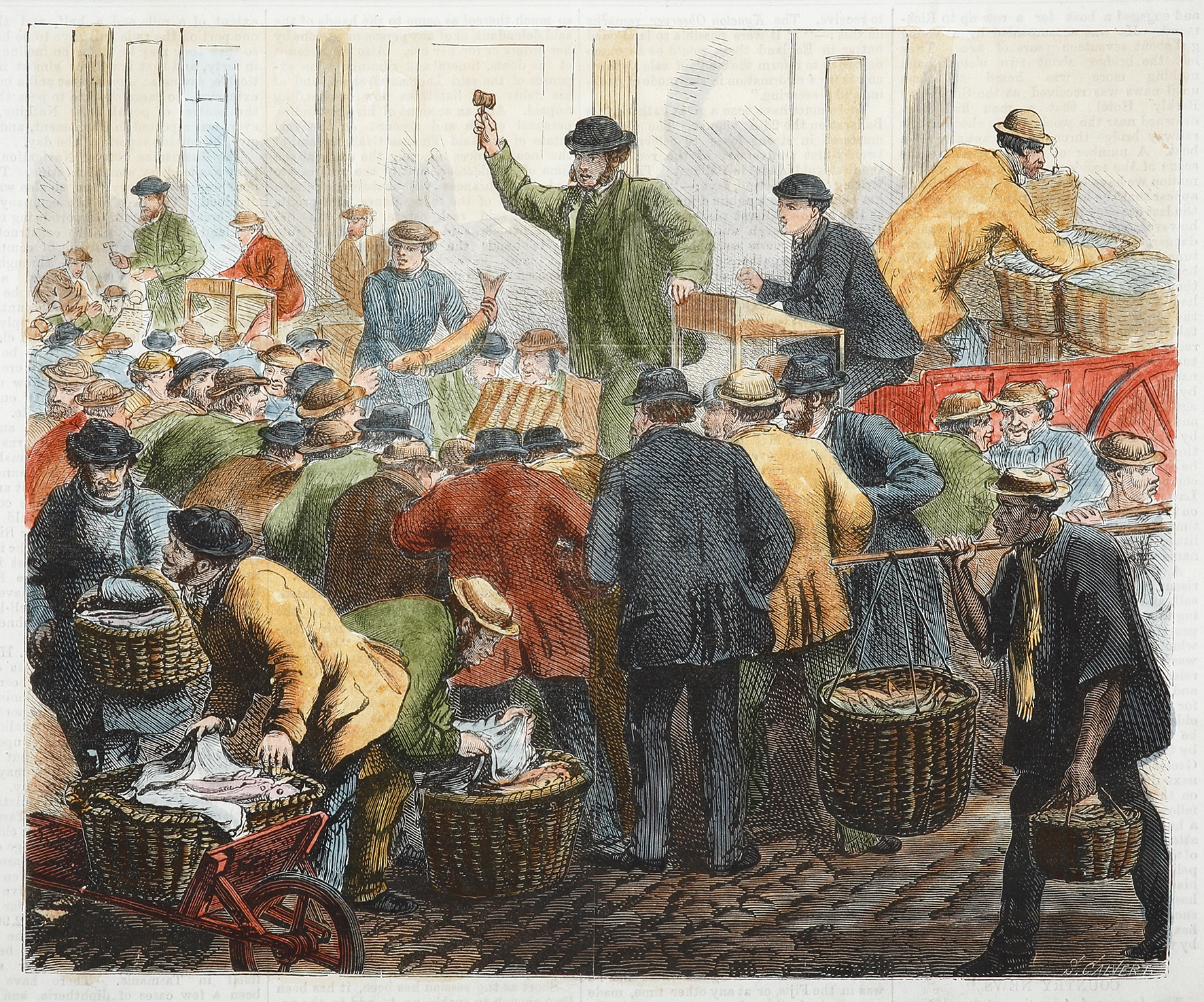 Rare colonial engraving of the Melbourne fish market.