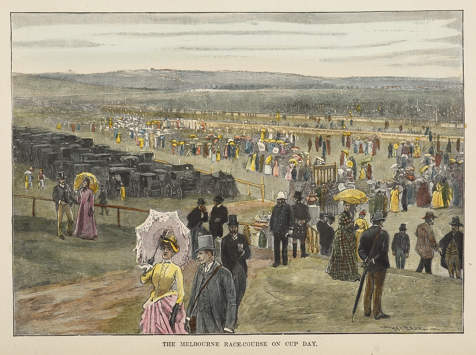 Colonial engraving of Melbourne Cup Day.