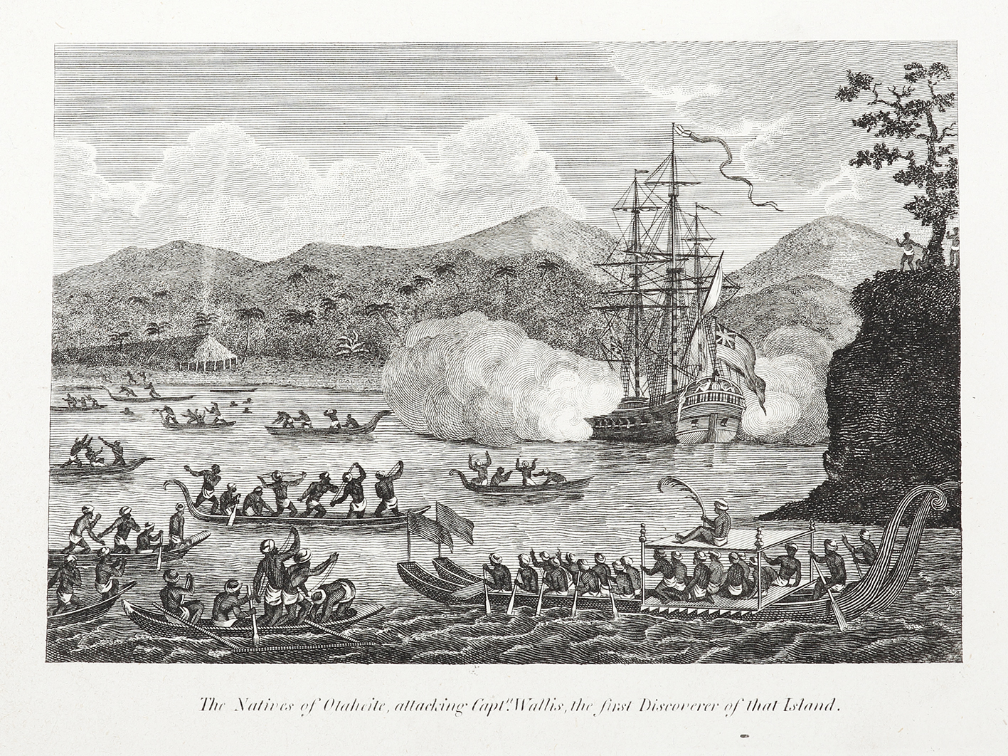 Scarce early c.19th engraving depicting the Natives of Otaheite attacking Captain Wallis