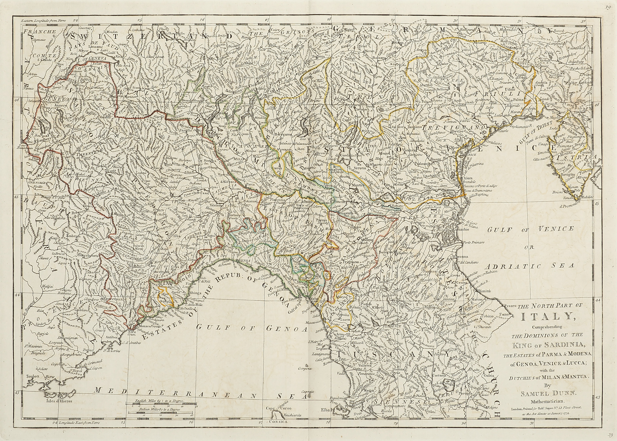 The North Part of Italy, Comprehending the Dominions of the King of Sardinia, the Estates of Parma & Moden, of Genoa, Venice & Lucca; with the Dutches of Milan & Mantua, by Samuel Dunn.