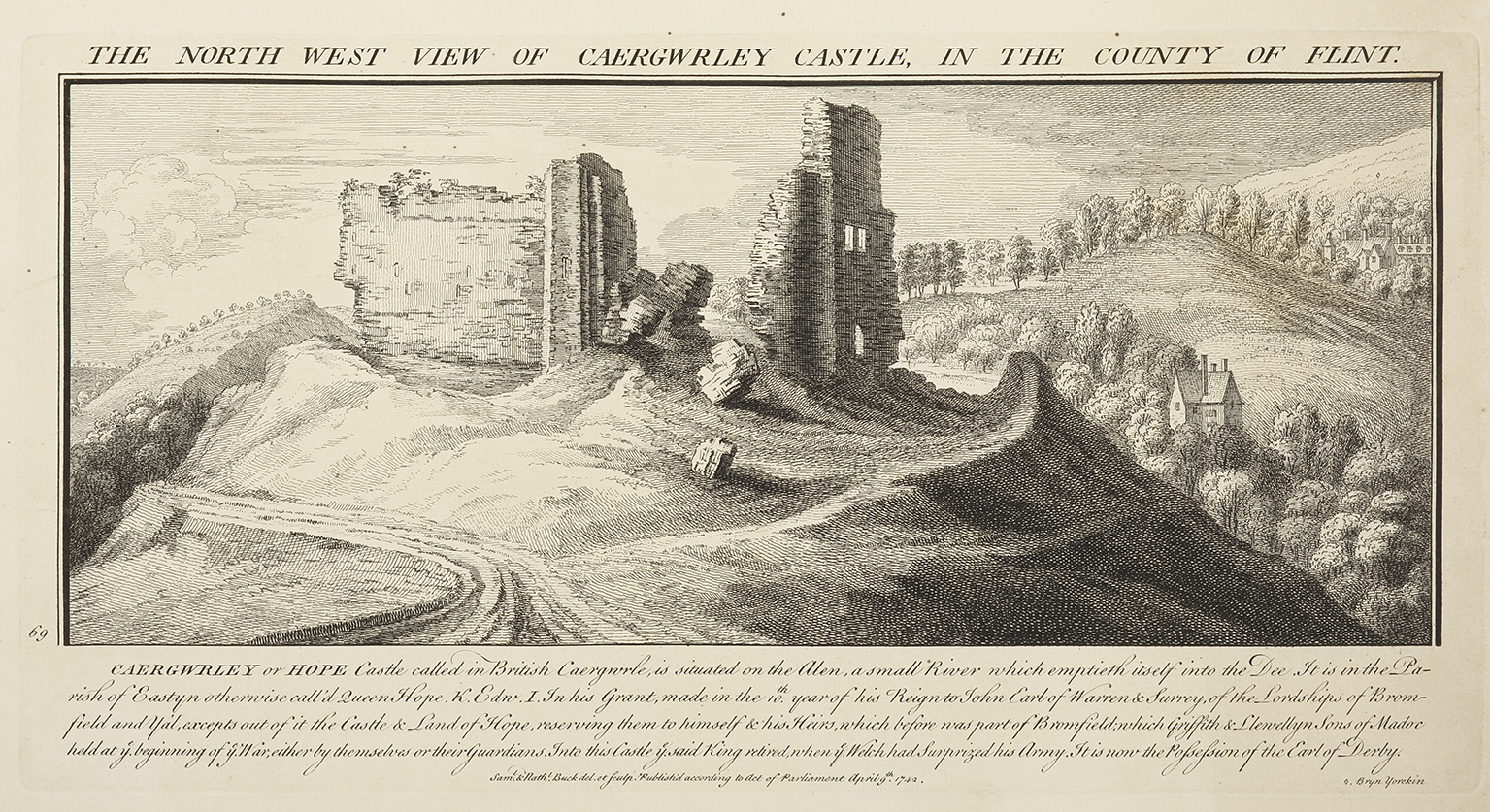 Scarce C.18th engraving of the ruin of Caergwrley Castle, Wales. From Buck’s, Antiquities and Views of Castles & Abbeys of England and Wales.