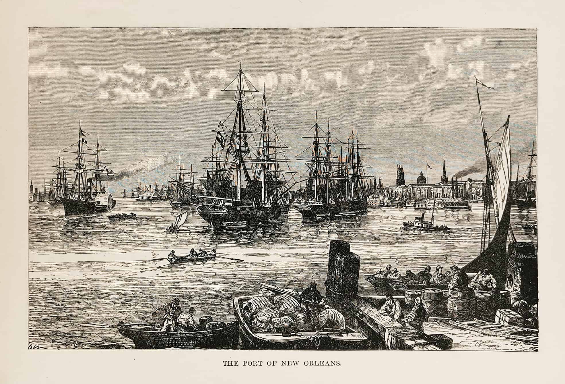Engraving showing the Port of New Orleans, in the state of Louisiana.